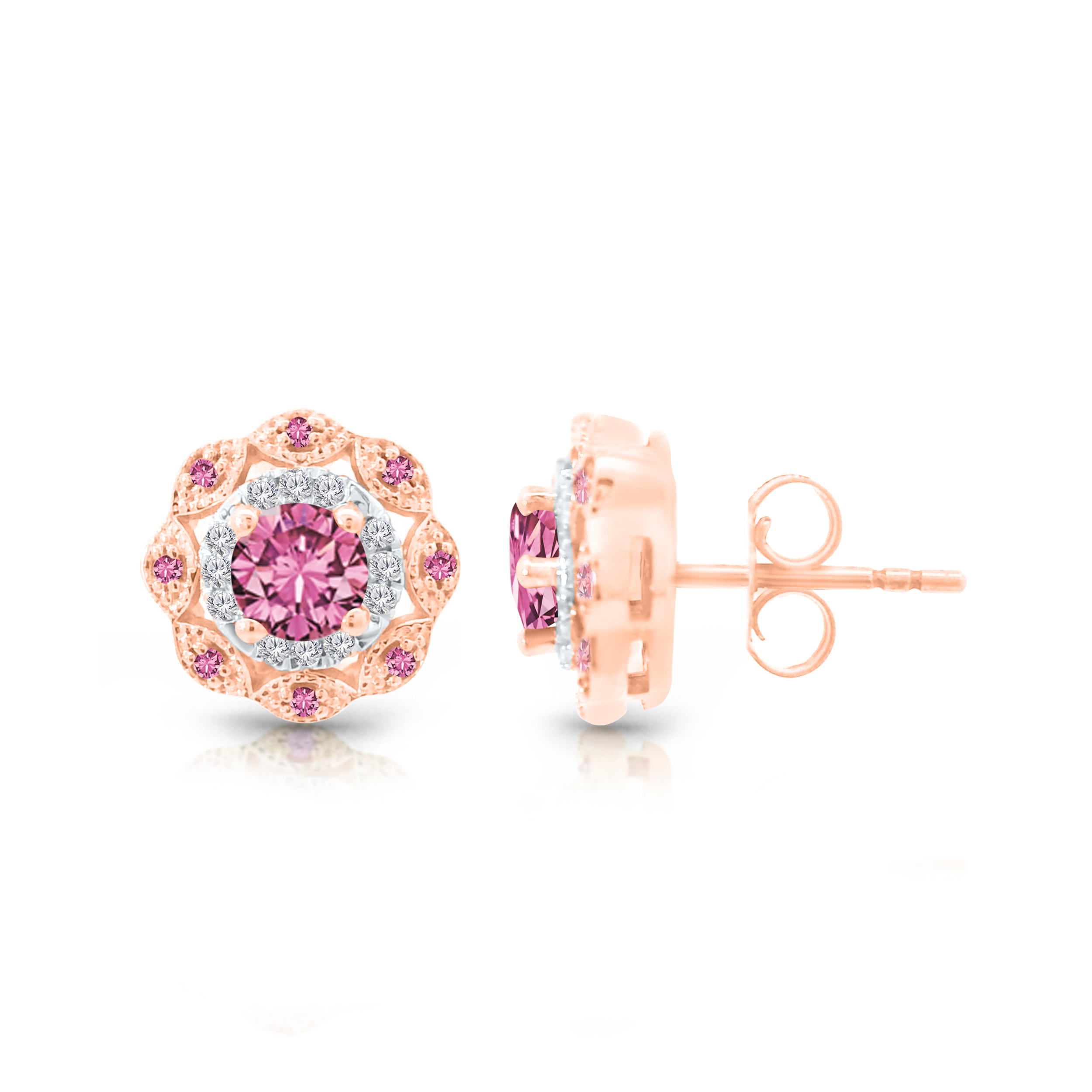14K ROSE GOLD MULTI SAPPHIRE WITH WHITE DIAMOND FASHION EARRING