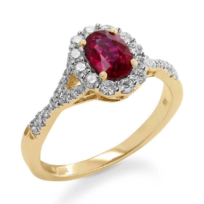 14K YELLOW GOLD GIA RUBY & WHITE DIAMOND