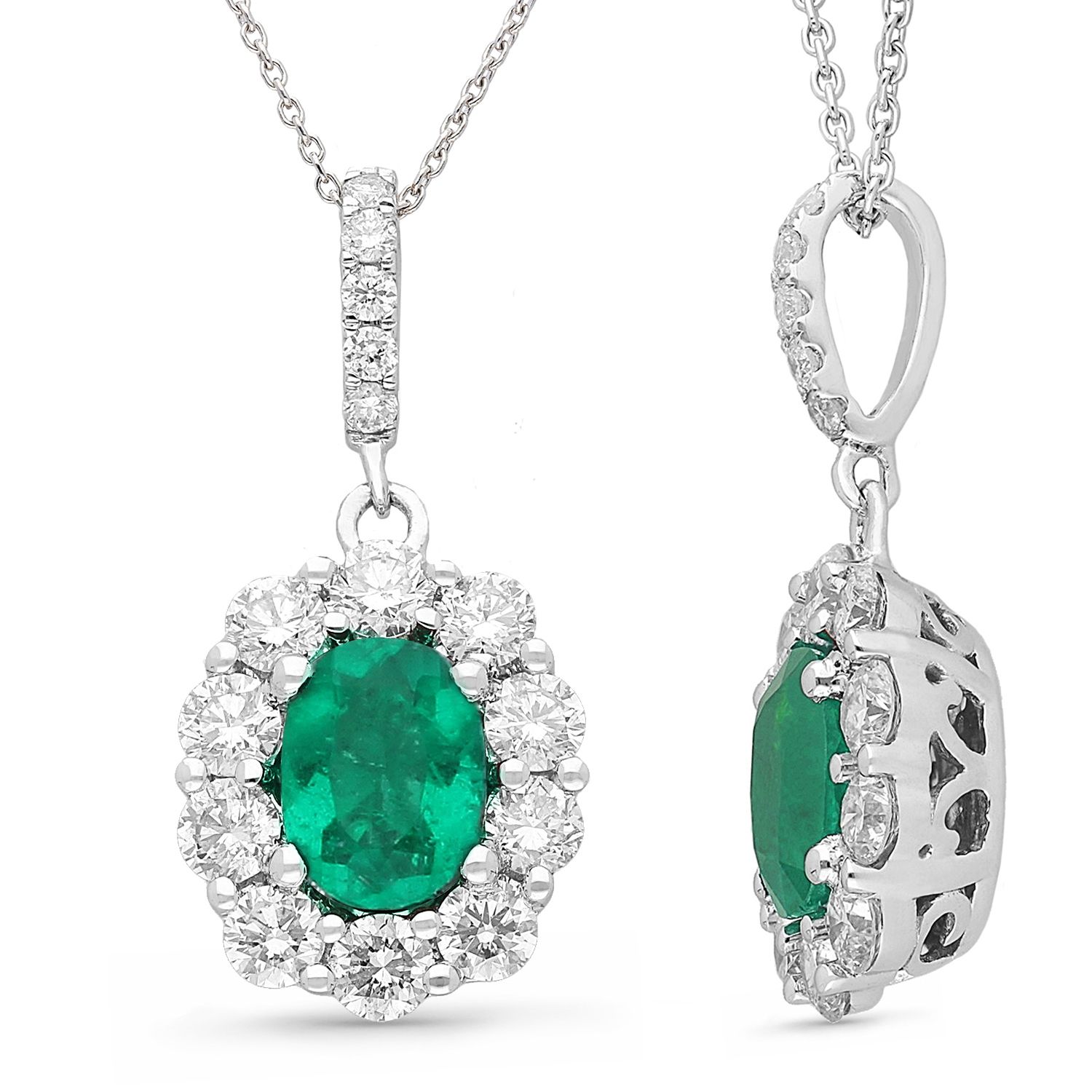 14K WHITE GOLD COLUMBIA EMERALD DIA PEND