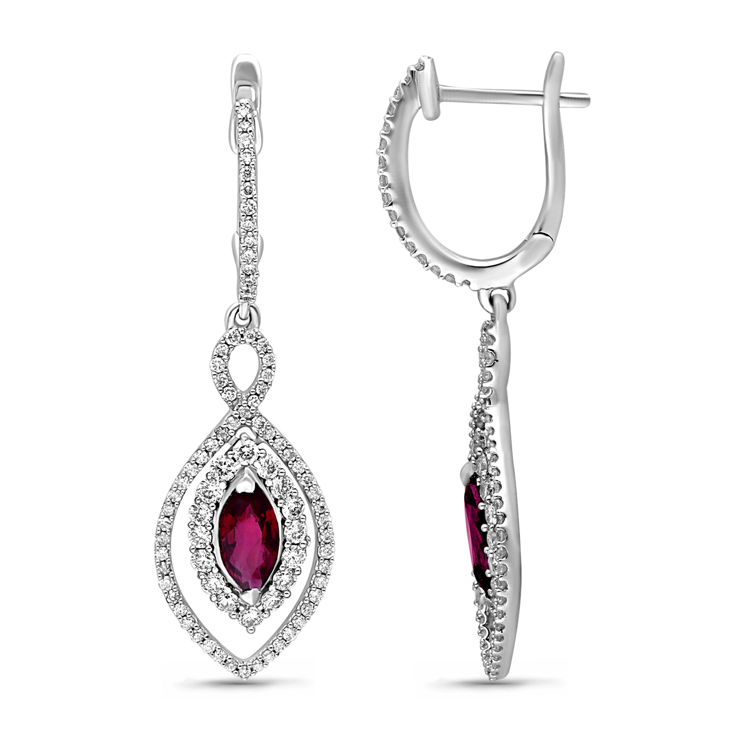 14K WHITE GOLD GIA RUBY & WHITE DIA EARR