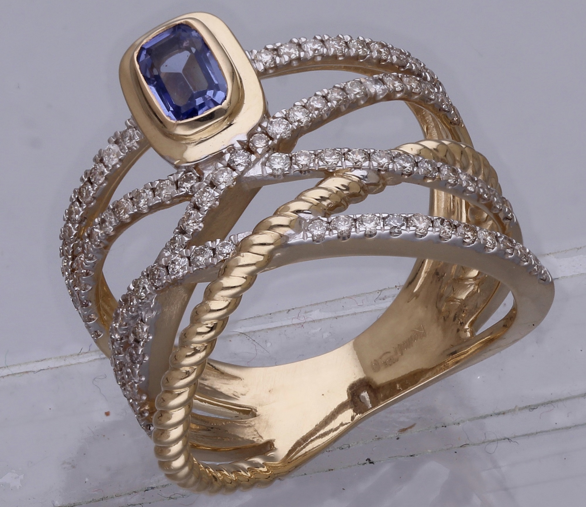 14K YELLOW GOLD TANZANITE WITH WHITE DIAMOND FASHION RING