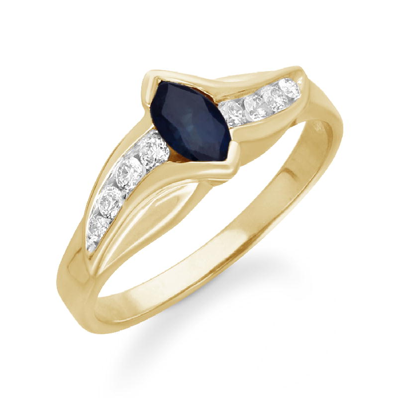14K YELLOW GOLD SAPPHIRE WITH WHITE DIAMOND FASHION RING