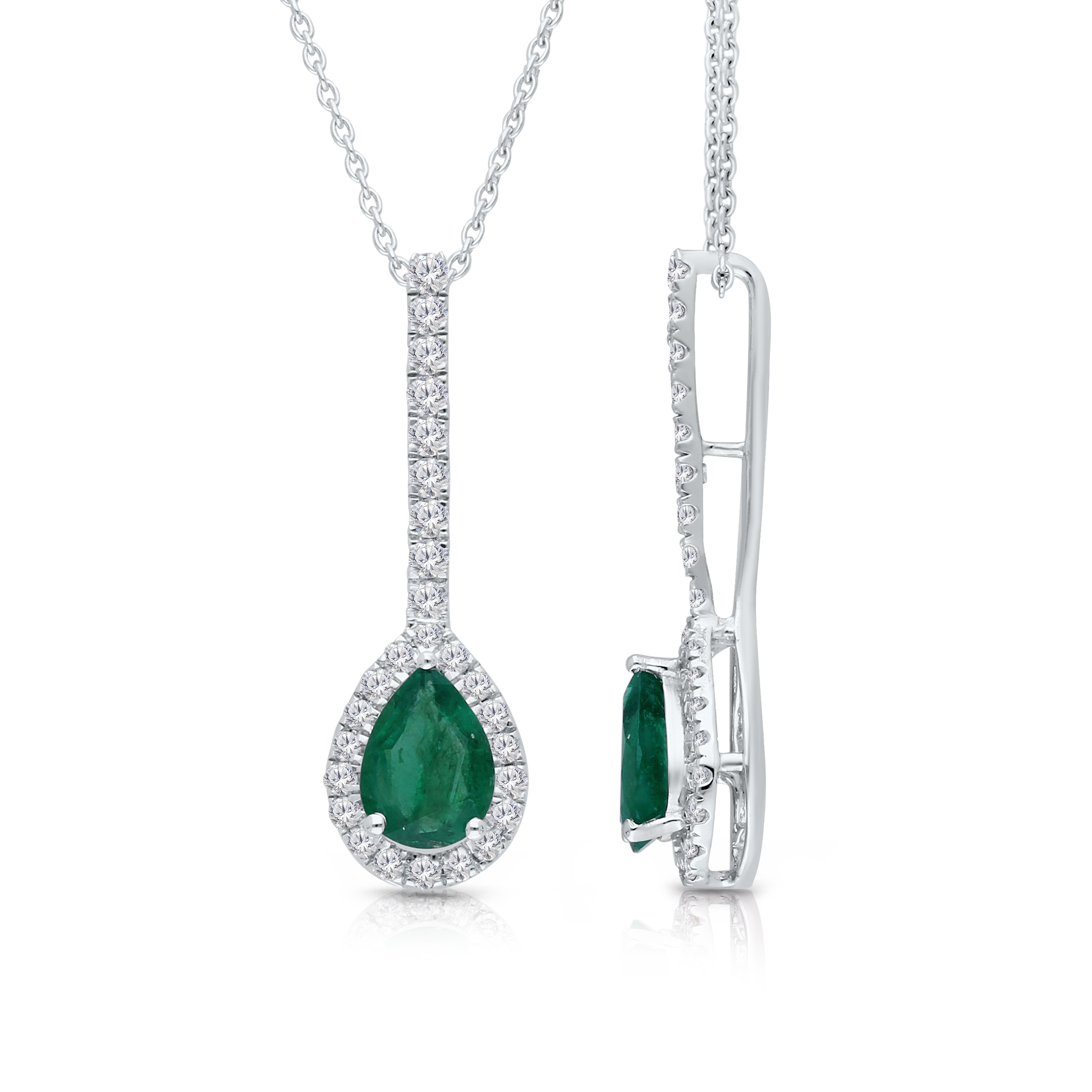 14K WHITE GOLD EMERALD & WHITE DIAMOND FASHION PENDANT