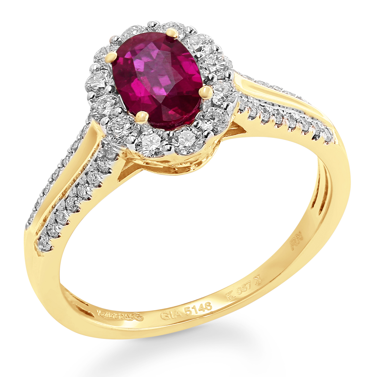 14K YELLOW GOLD GIA RUBY & WHITE DIAMOND