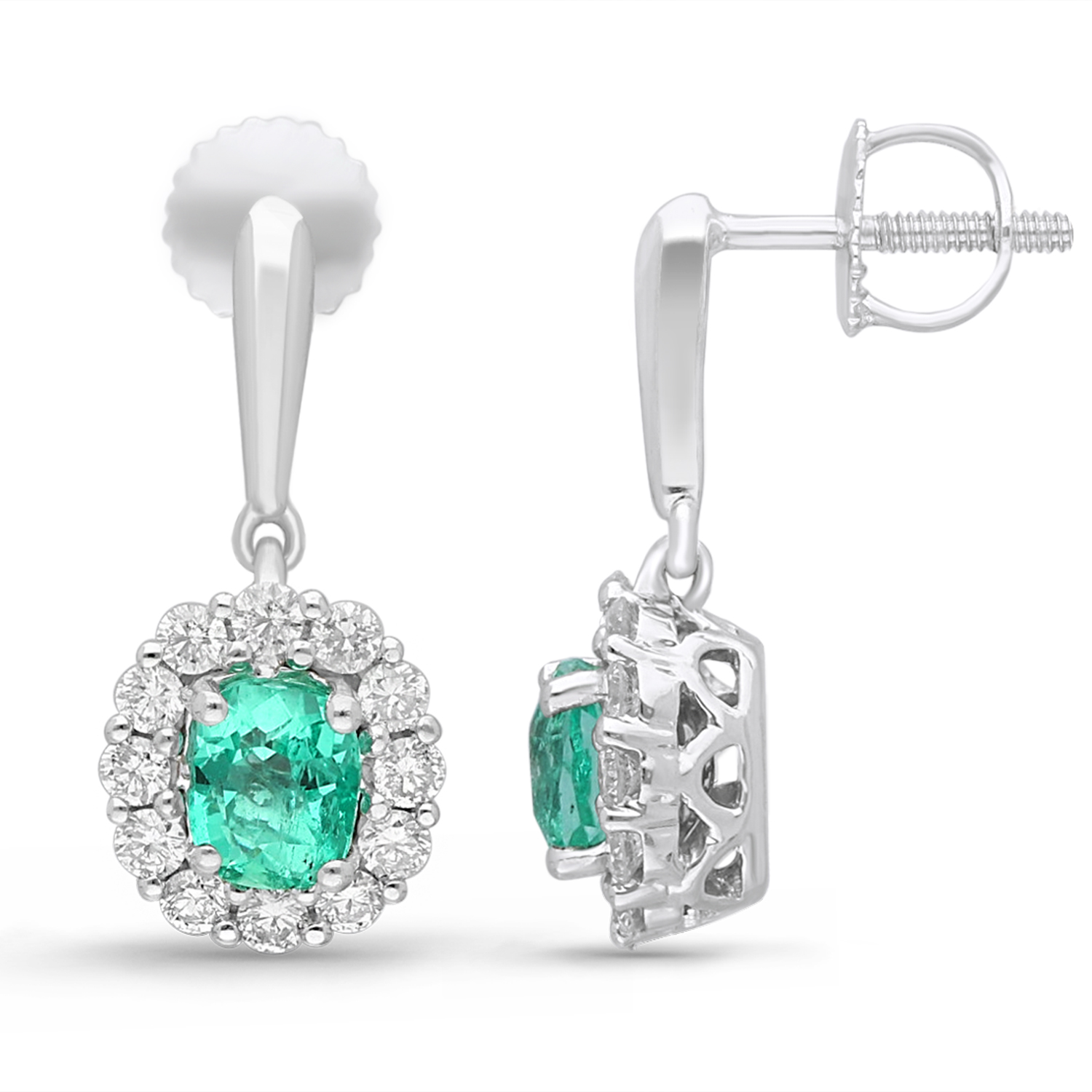 14K WHITE GOLD COLUMBIA EMERALD DIA EARR