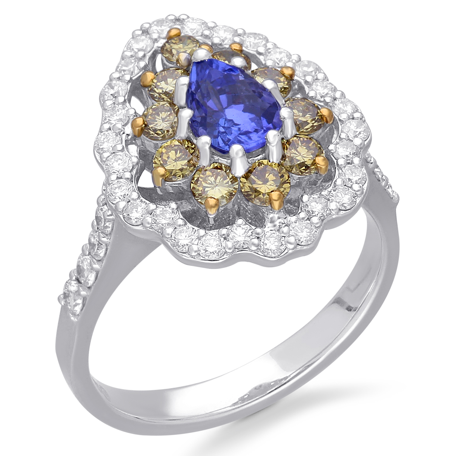 14K WHTE GOLD TANZANITE & YELLOW DIAMOND