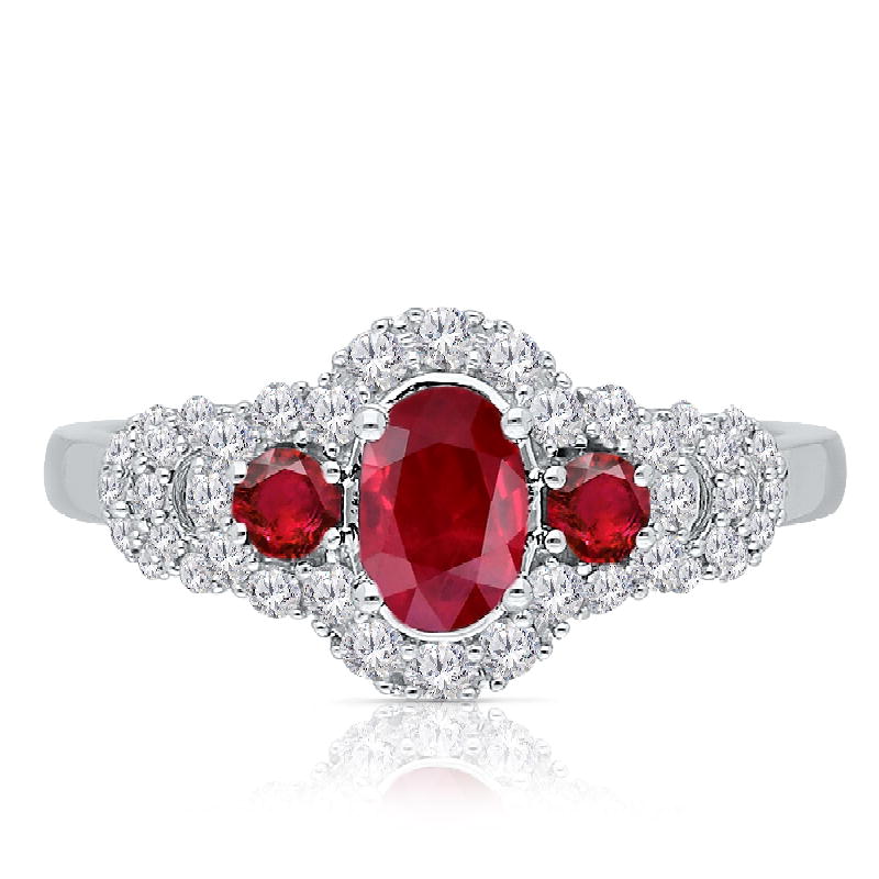14K WHITE GOLD RUBY DIAMOND FASHION RING