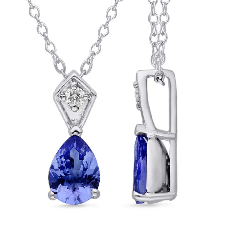 14K WHITE GOLD TANZANITE & WHITE DIAMOND FASHION PENDANT