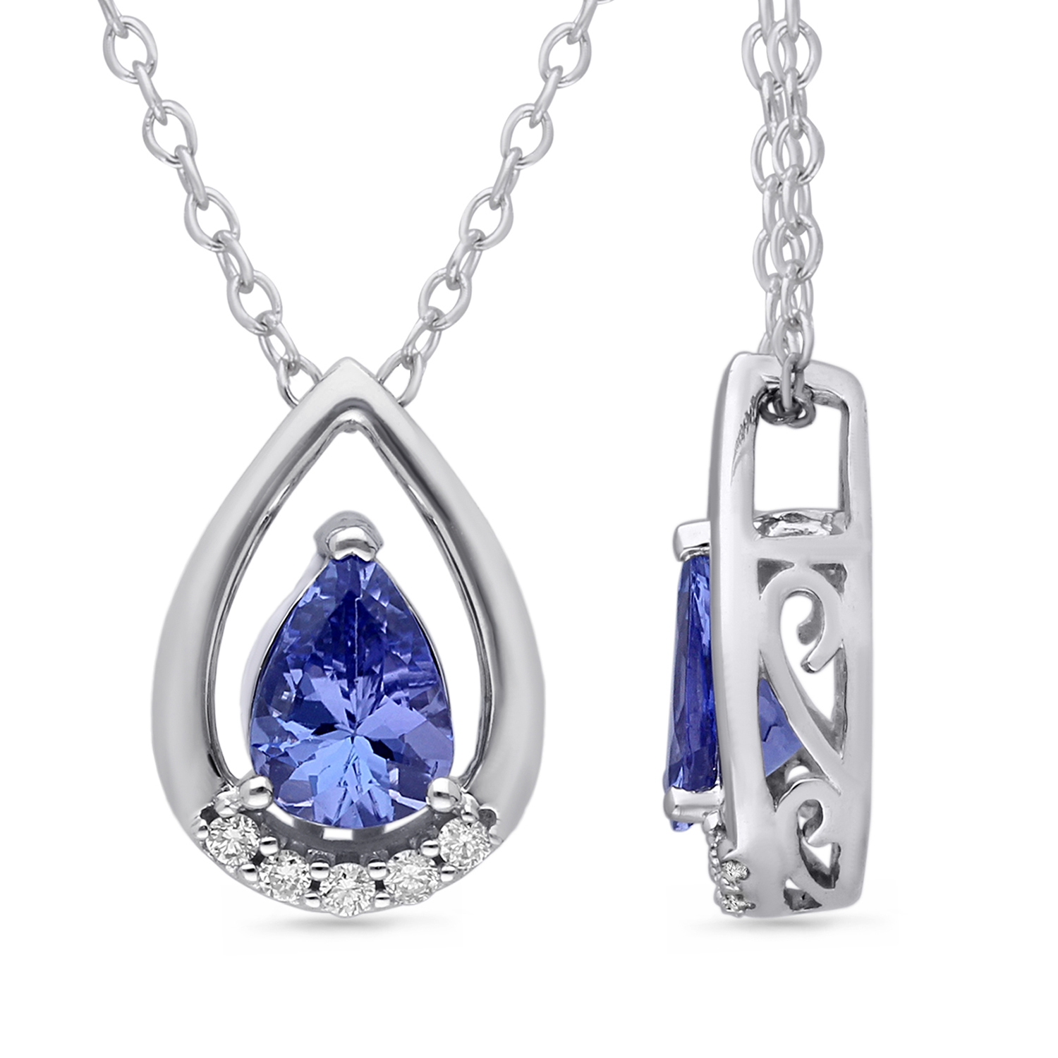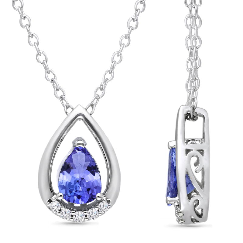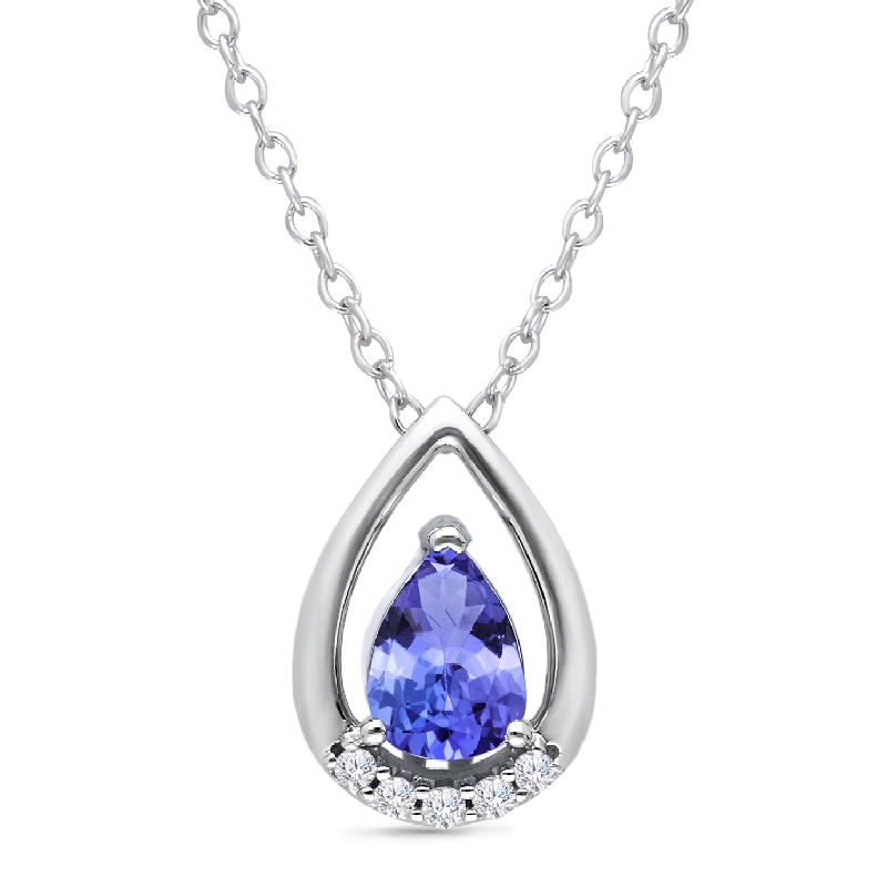 14K WHITE GOLD TANZANITE & WHITE DIAMOND FASHION PENDANT