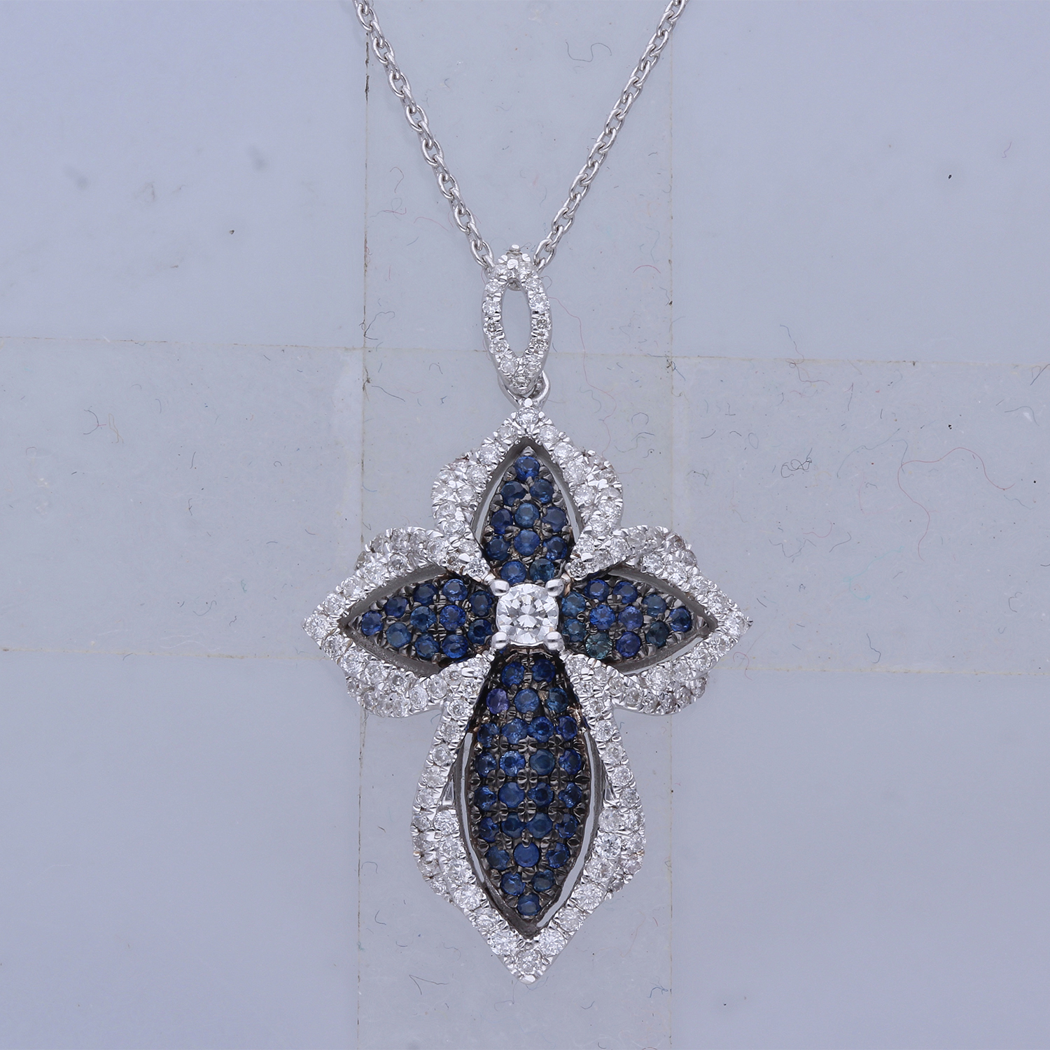 WHITE GOLD SAPPHIRE DIAMOND PENDANT