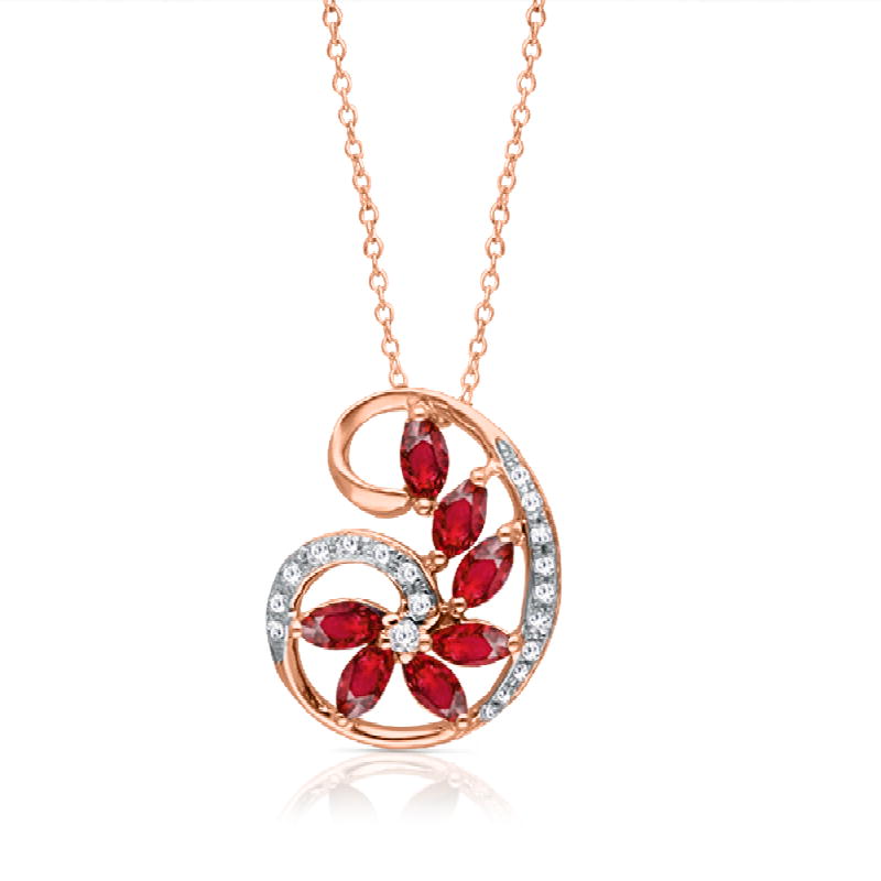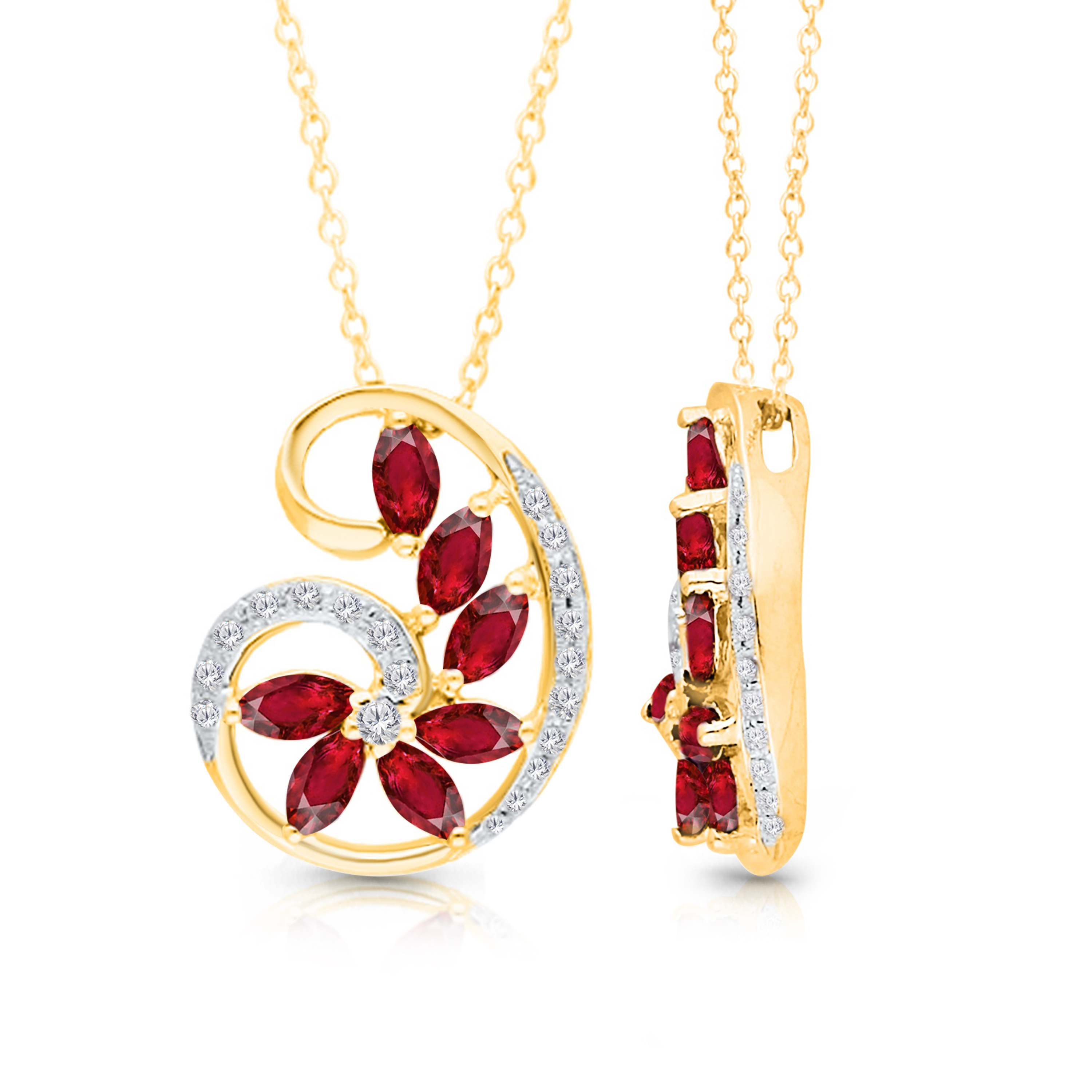 14K YELLOW GOLD RUBY & WHITE DIAMOND