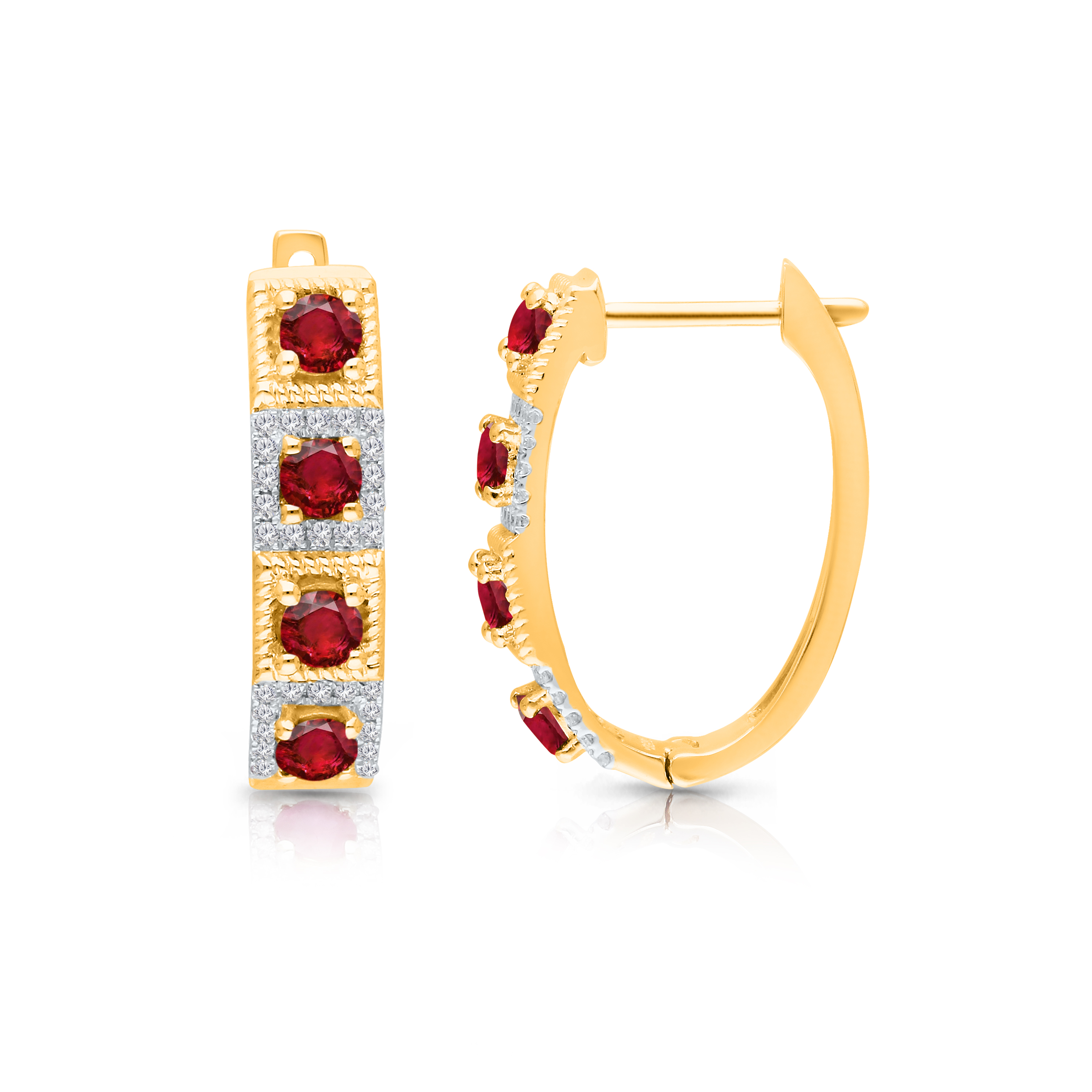 14K YELLOW GOLD RUBY WITH WHITE DIAMOND FASHION EARRING