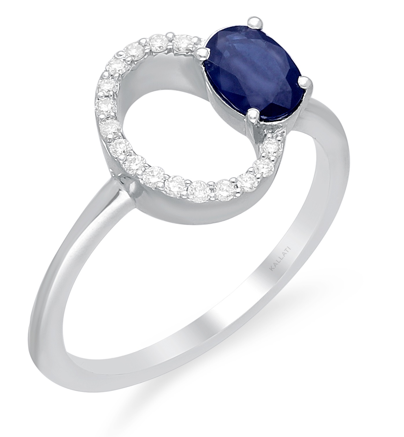 14K YELLOW GOLD TEAL SAPPHIRE & WHITE DIAMOND FASHION RING
