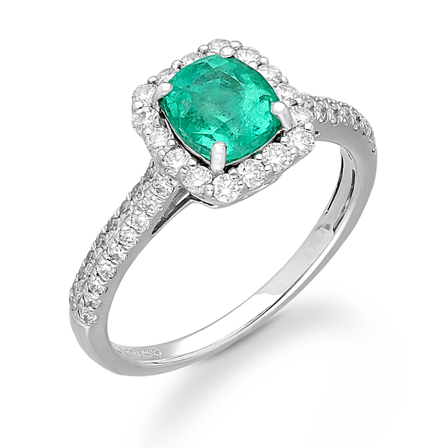 14K WHITE GOLD COLUMBIA EMERALD DIA RING