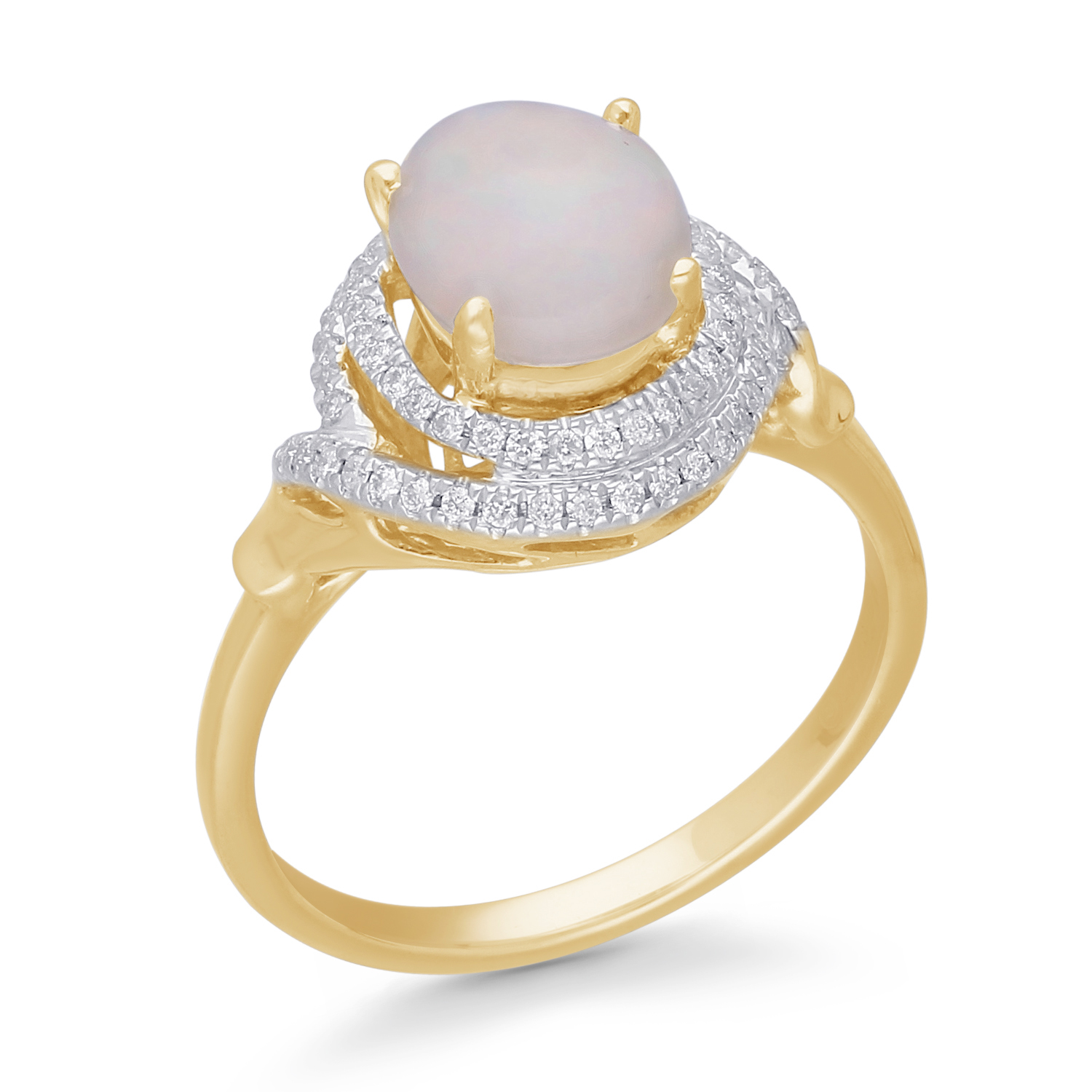 14K YELLOW GOLD OPAL & WHITE DIAMOND FASHION RING