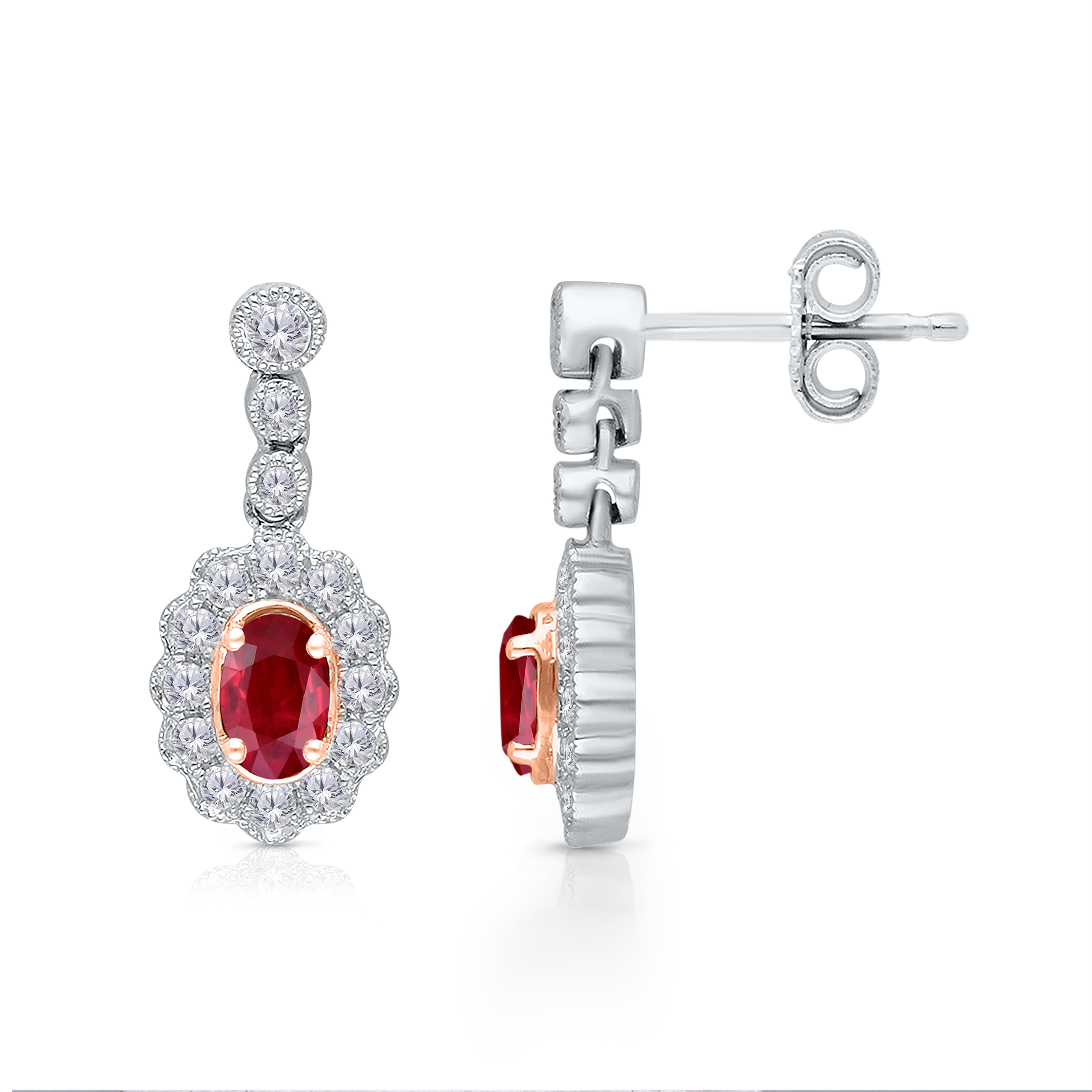 14K YELLOW GOLD RUBY WITH WHITE DIAMOND FASHION EARRING