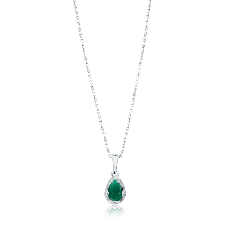 14K WHITE GOLD EMERALD & WHITE DIAMOND F