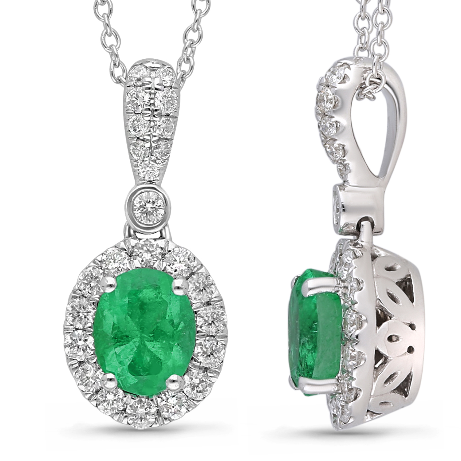 14K WHITE GOLD COLUMBIA EMERALD DIA PEND