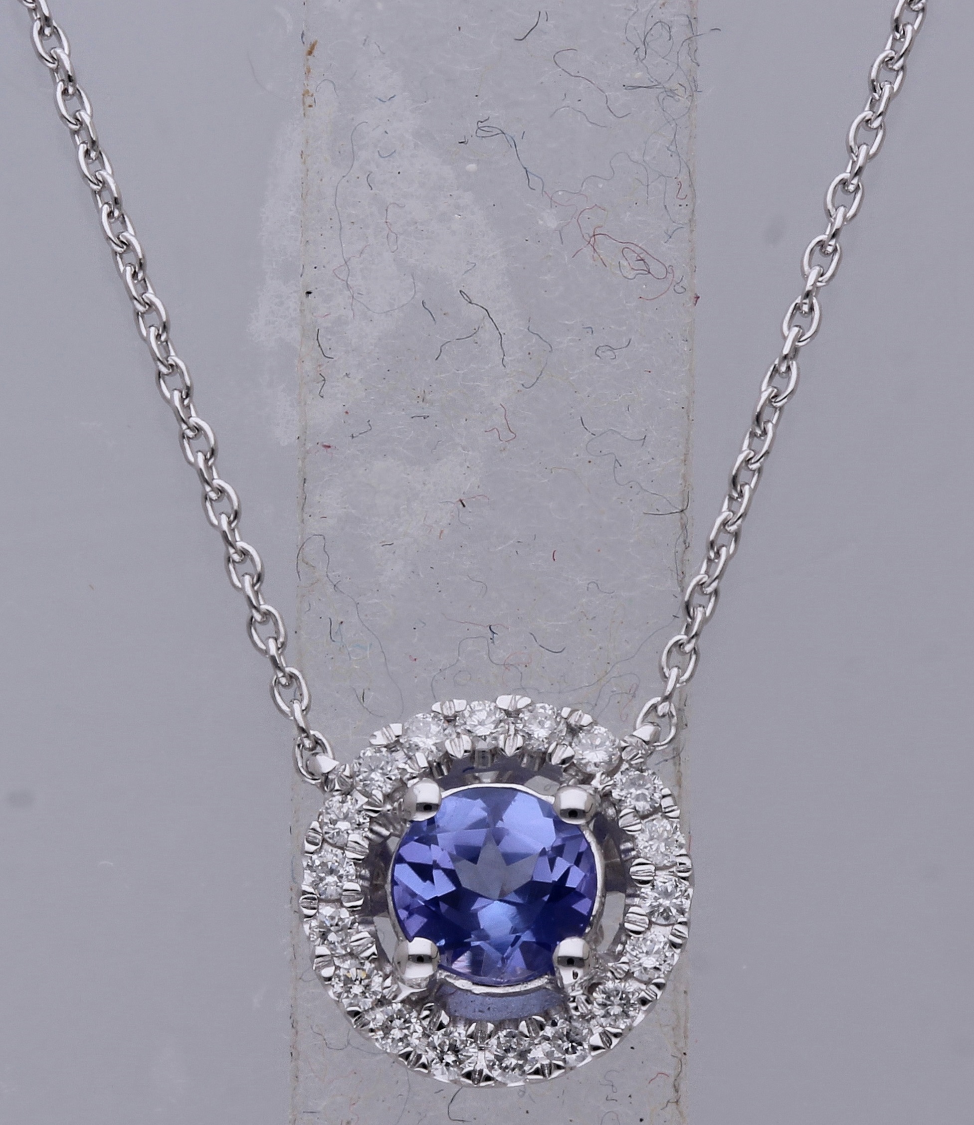 14K WHITE GOLD BLUE TOPAZ & WHITE DIAMON