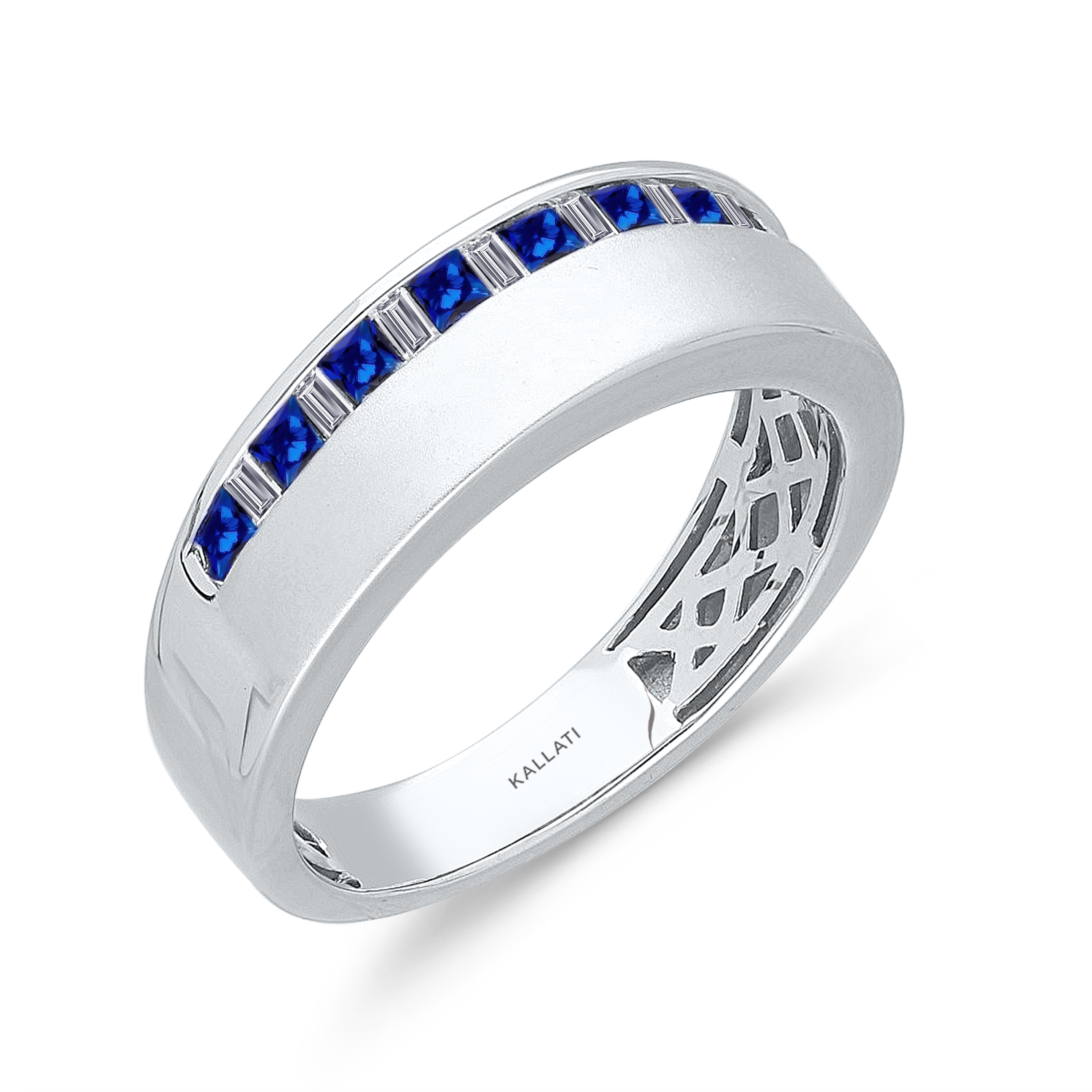 14K WHITE GOLD SAPPHIRE & DIA MENS RING