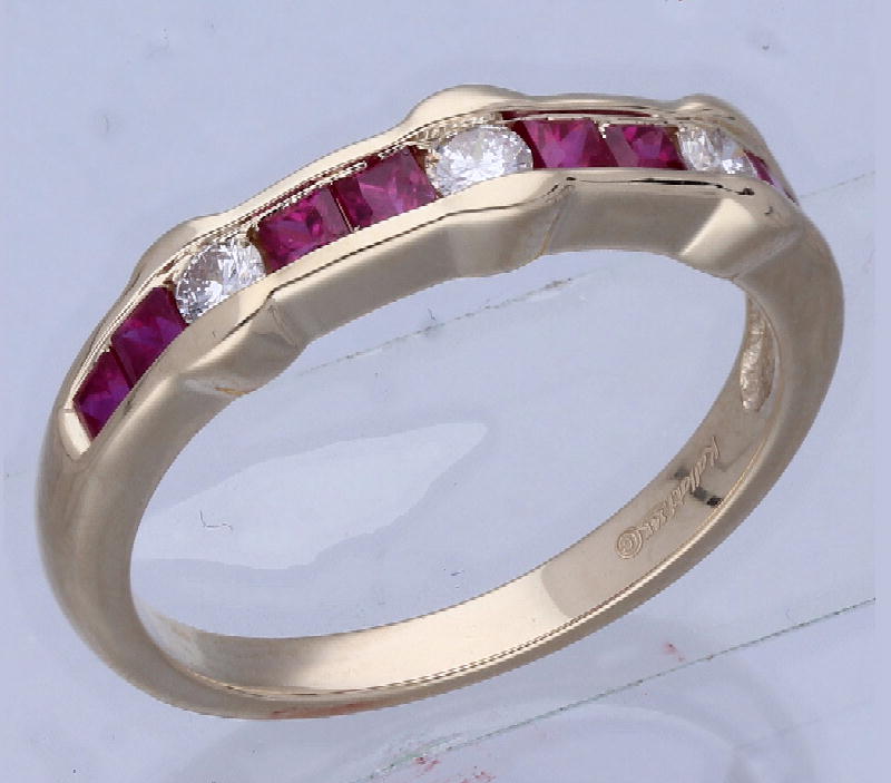 14K YELLOW GOLD RUBY & WHITE DIA ENG RIN