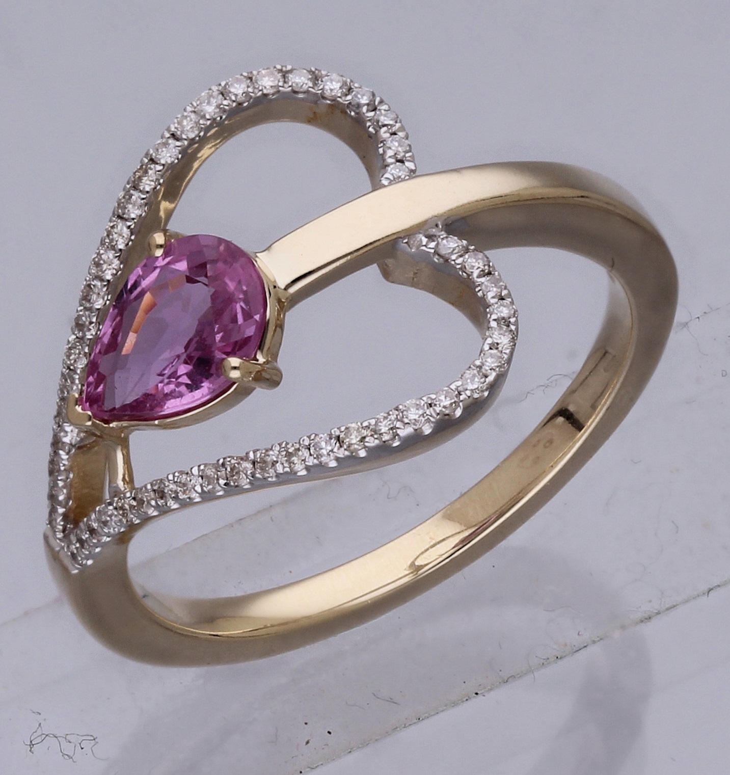 14K YELLOW GOLD SAPPHIRE AND WHITE DIAMOND FASHION RING