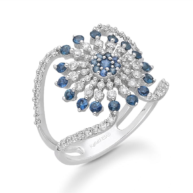 14K WHITE GOLD SAPPHIRE & WHITE DIAMOND