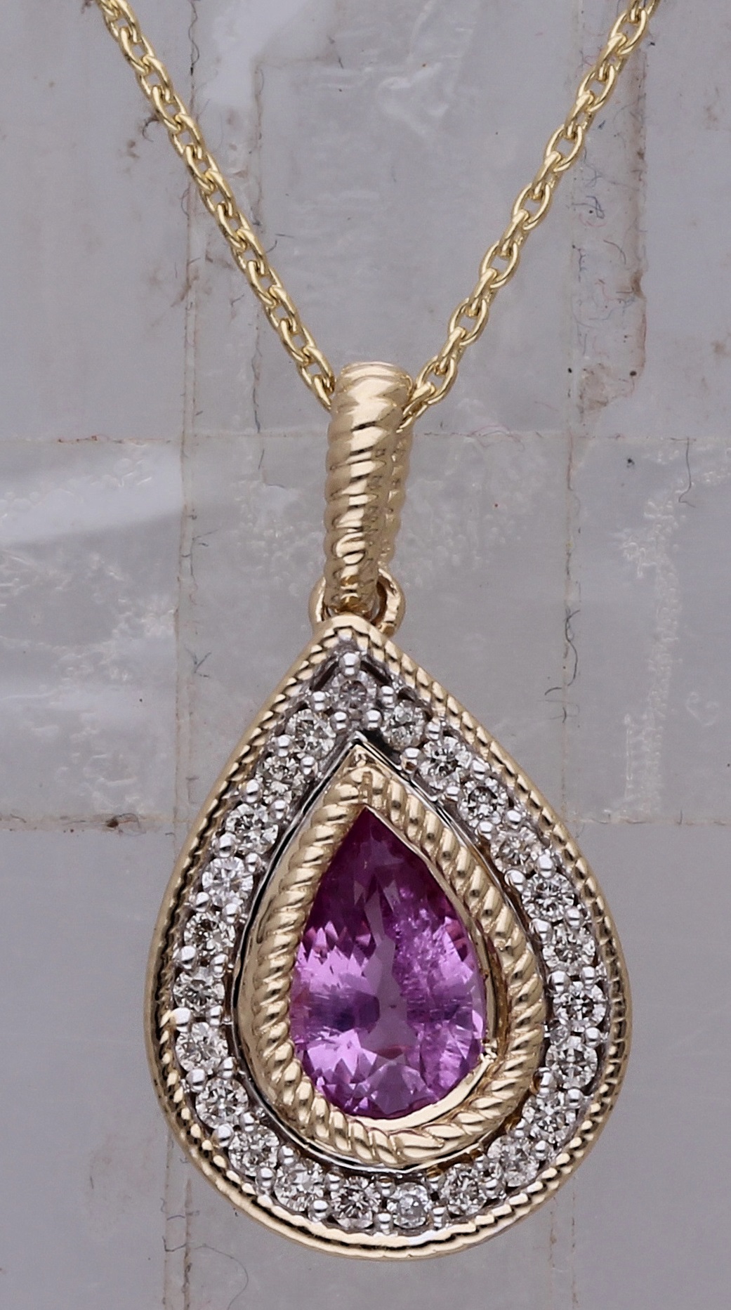 14K YELLOW GOLD MULTI SAPPHIRE WITH WHITE DIAMOND FASHION PENDANT