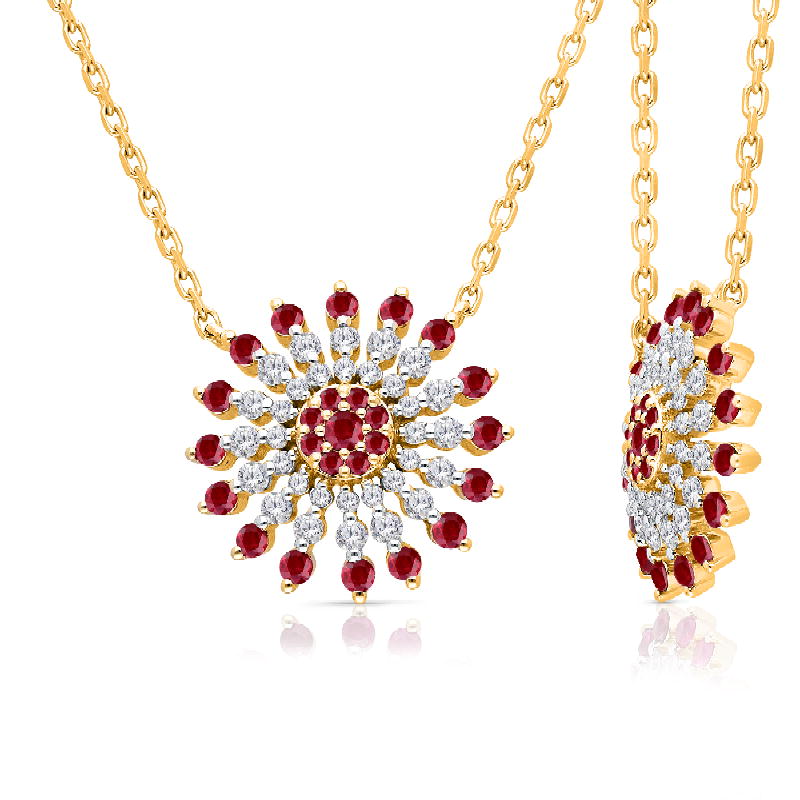 14K YELLOW GOLD SI WHITE & RUBY DIAMOND
