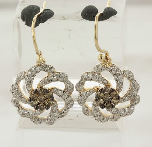 14K YELLOW GOLD PINK SAPPHIRE & WHITE DIAMOND FASHION EARRING
