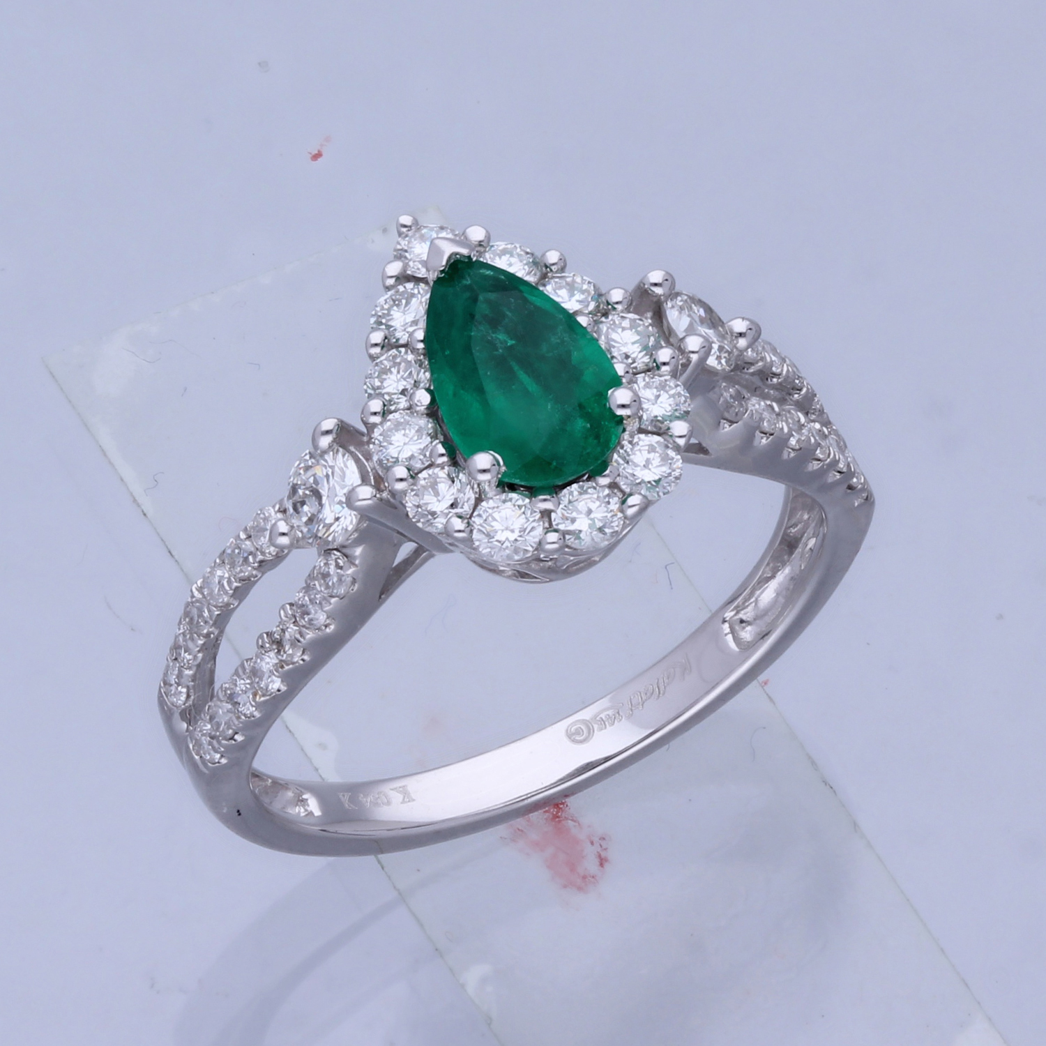 14K WHITE GOLD COLUMBIA EMERALD & WHITE