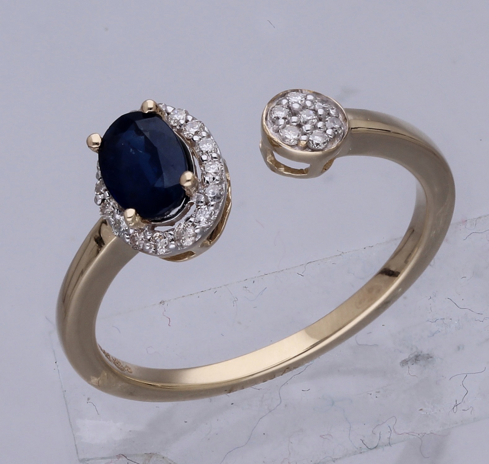 14K YELLOW GOLD TEAL SAPPHIRE WITH WHITE DIAMOND RING