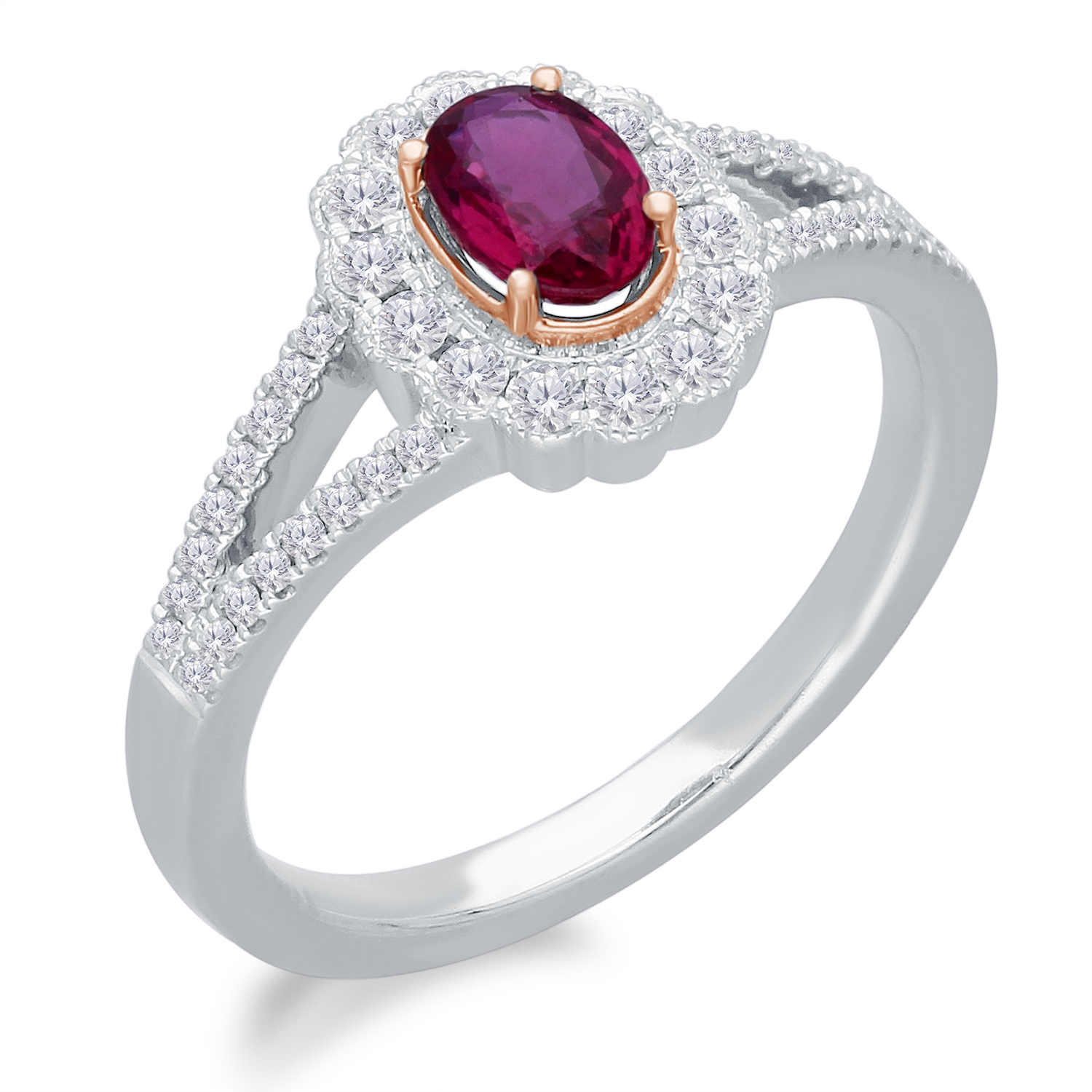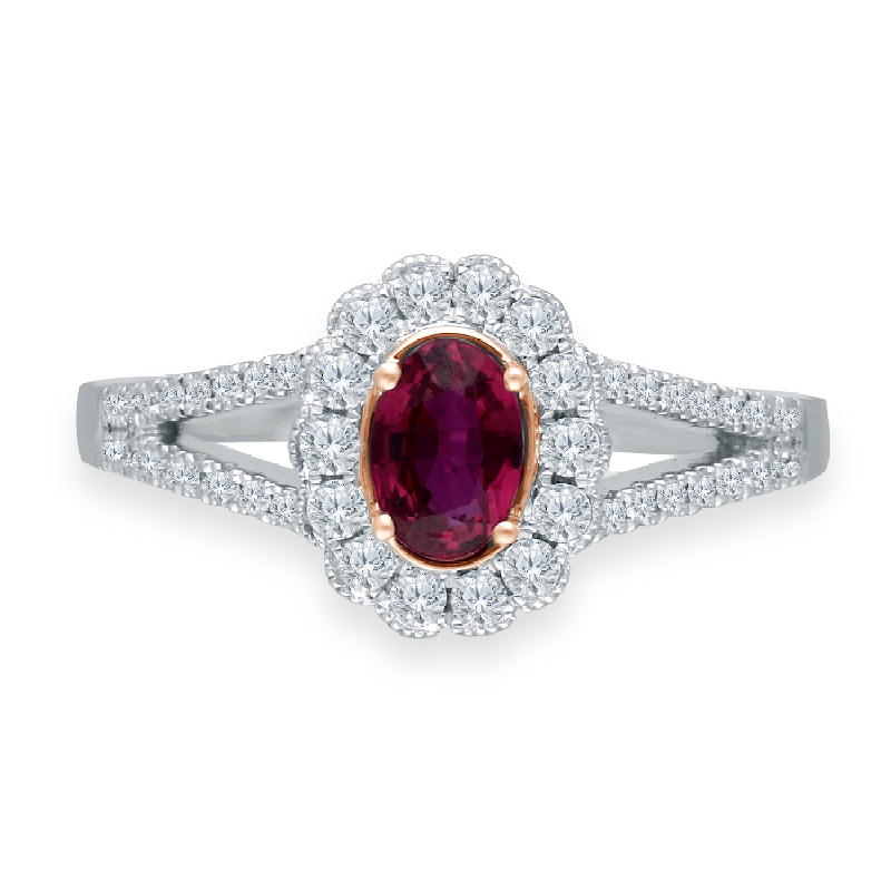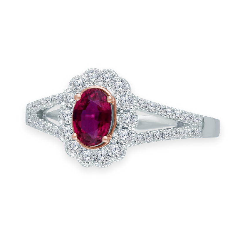 14K ROSE & WHITE GOLD RUBY & WHITE D