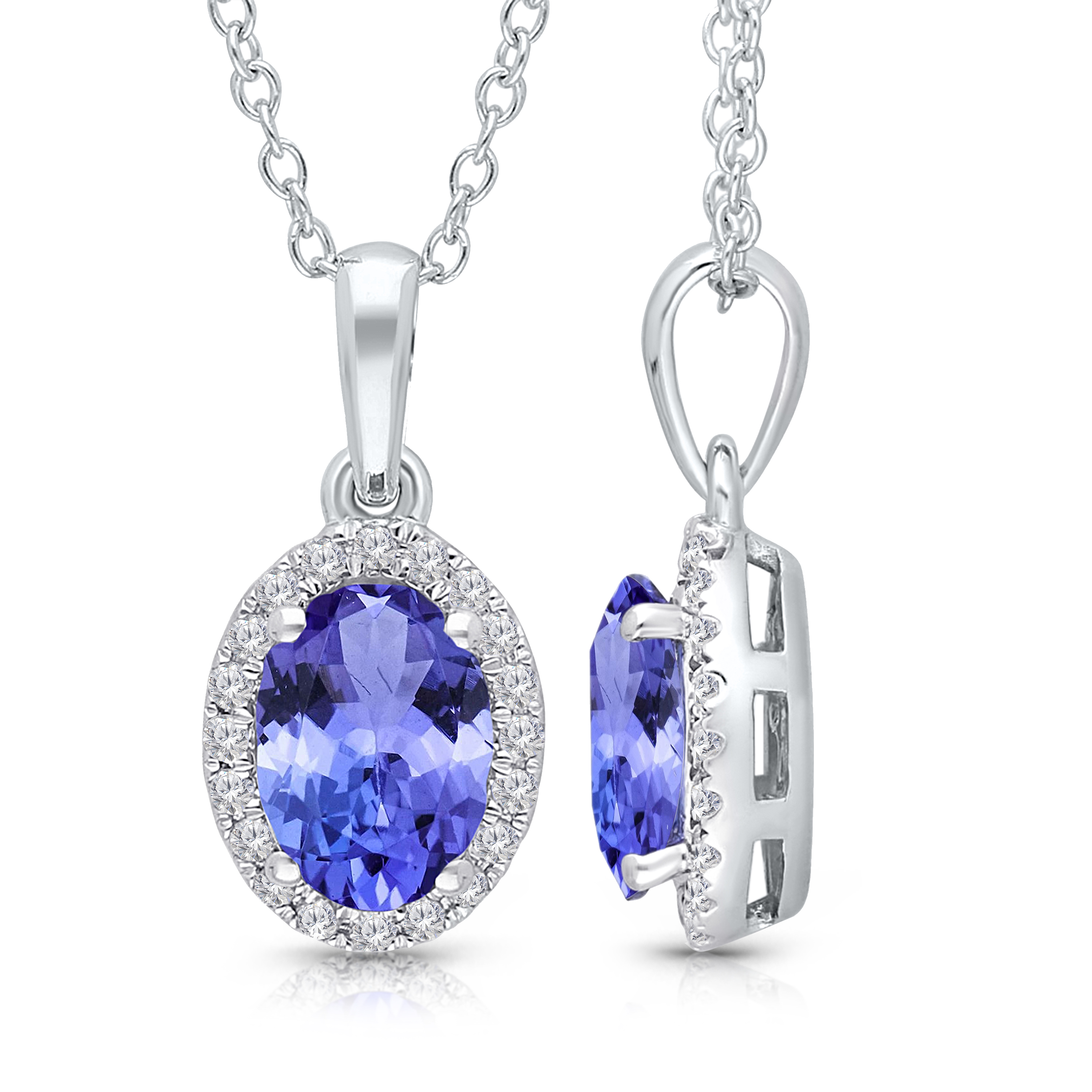 14K WHTE GOLD TANZANITE & WHITE DIAMOND FASHION PENDANT