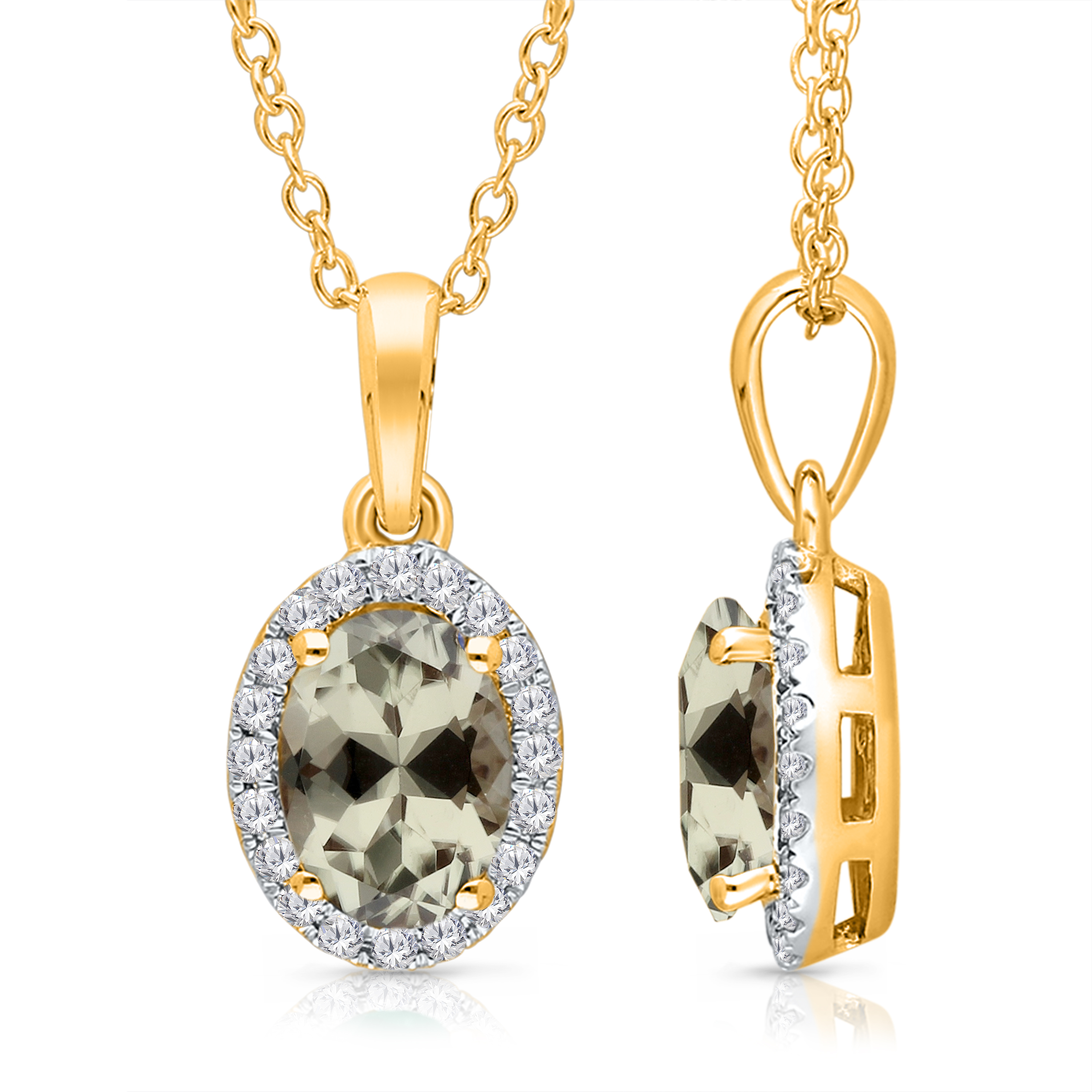 14K YELLOW GOLD TEAL SAPPHIRE WITH WHITE DIAMOND FASHION PENDANT