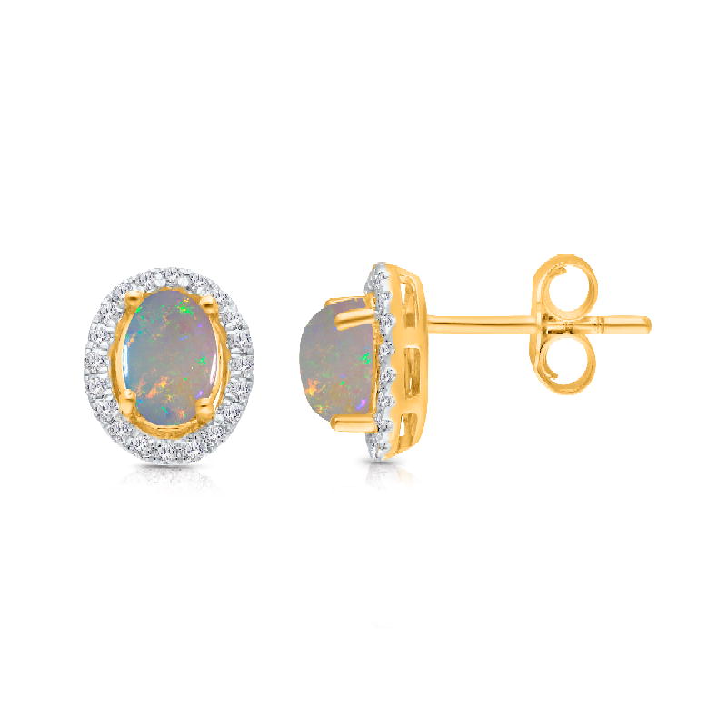 14K YELLOW GOLD OPAL & WHITE DIAMOND FASHION EARRING
