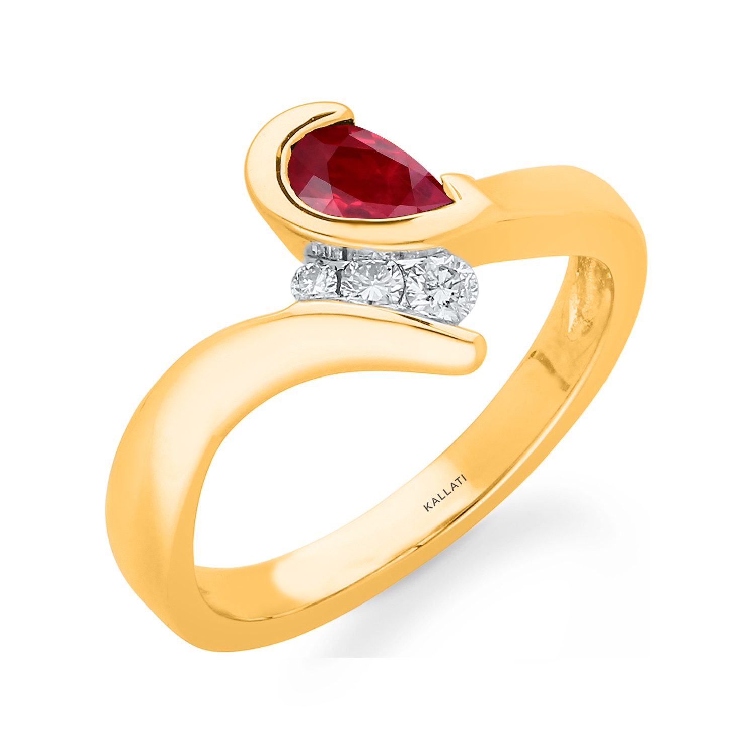 14K YELLOW GOLD RUBY & WHITE DIAMOND RIN