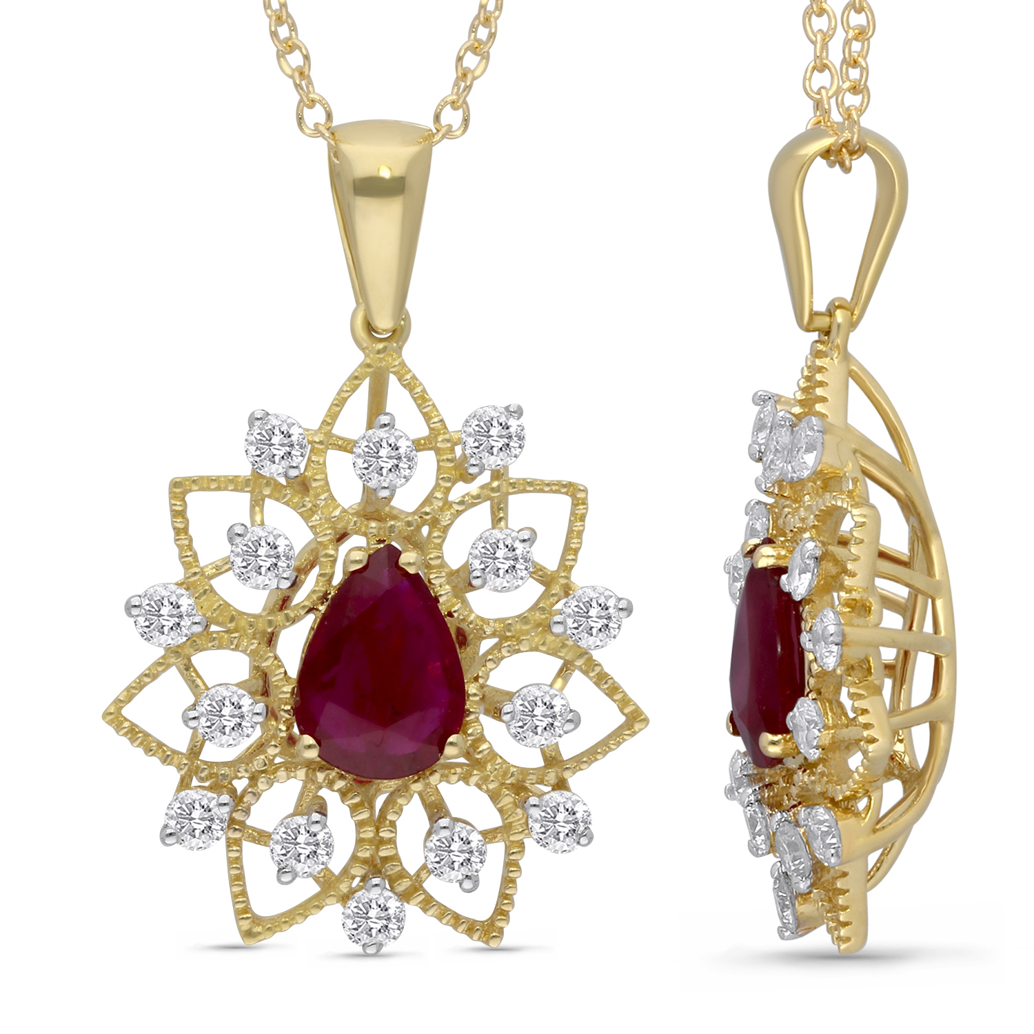 14K YELLOW GOLD RUBY WITH WHITE DIAMOND FASHION PENDANT
