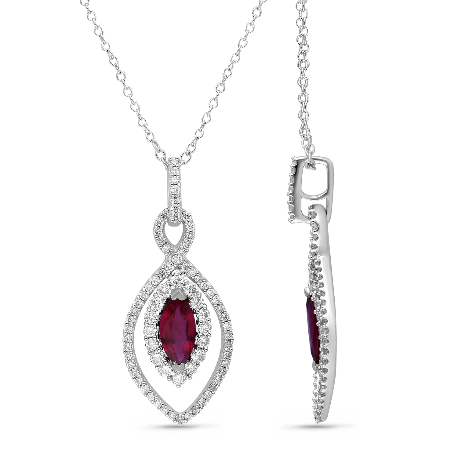 14K WHITE GOLD GIA RUBY & WHITE DIA PEND