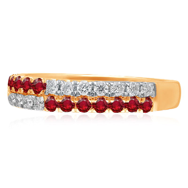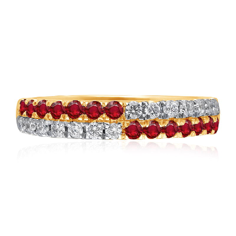 14K YELLOW GOLD RUBY & WHITE DIAMOND BAN