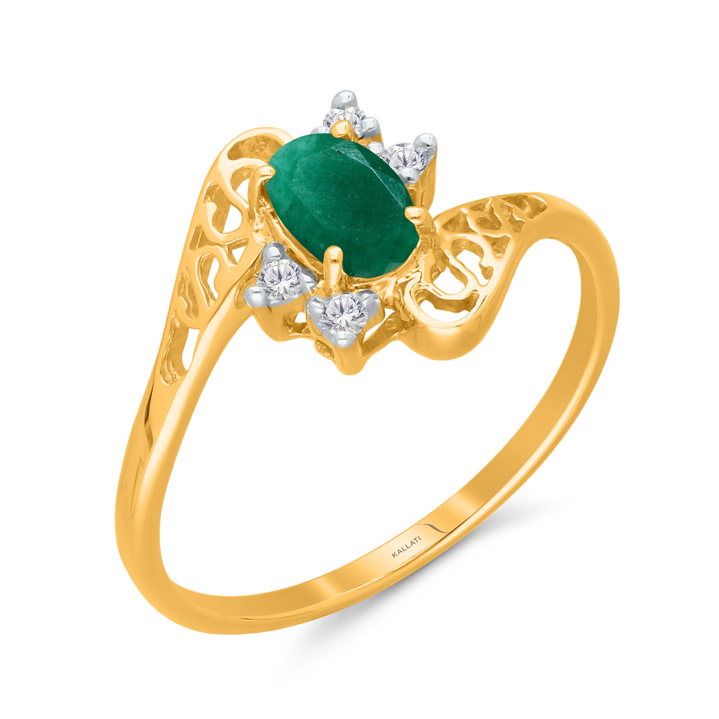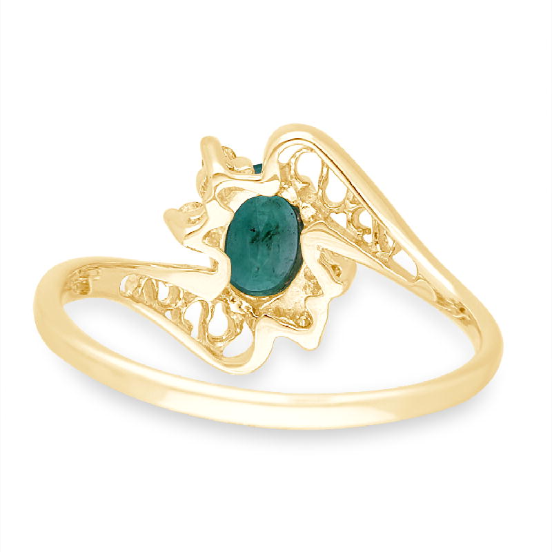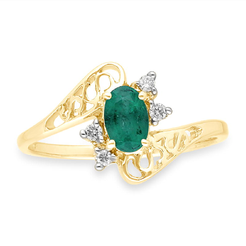 14K YELLOW GOLD EMERALD & WHITE DIAMOND