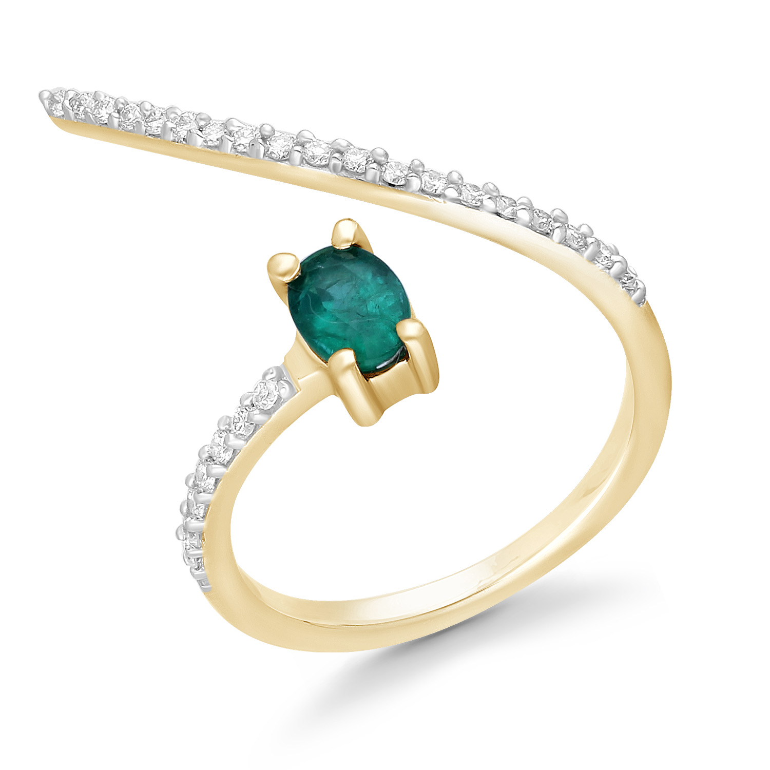 14K YELLOW GOLD EMERALD & WHITE DIAMOND