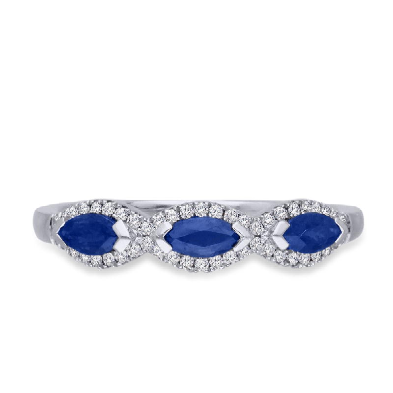 14K WHITE GOLD SAPPHIRE & WHITE DIAMOND