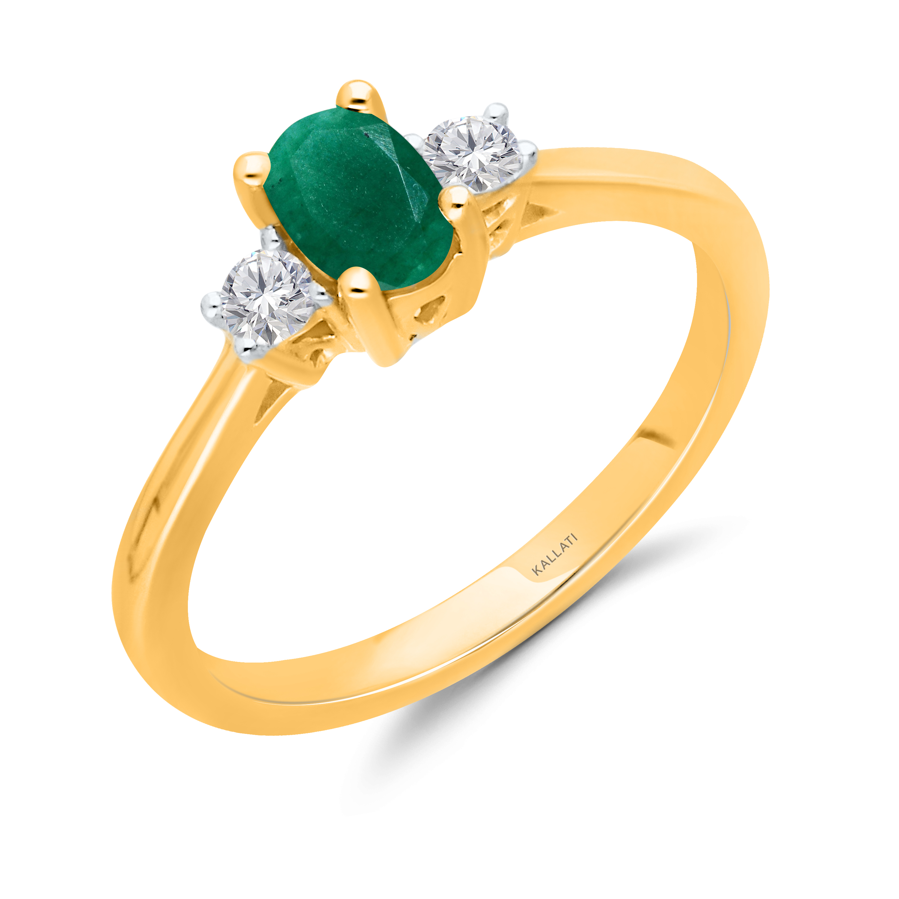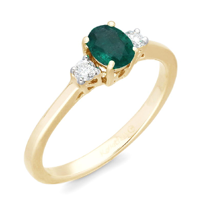 14K YELLOW GOLD EMERALD & WHITE DIAMOND