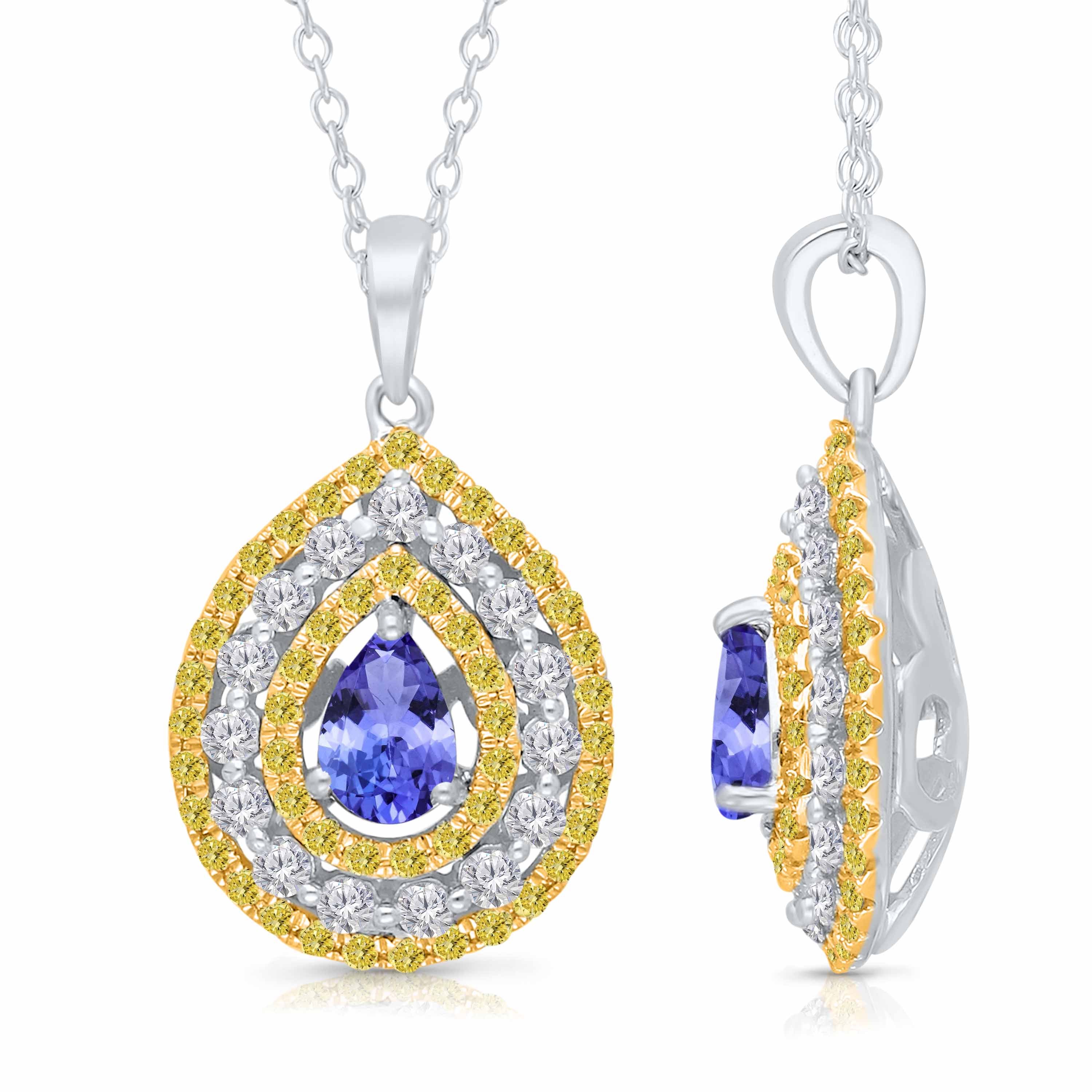 14K WHITE GOLD TANZANITE CENTER WITH YEL