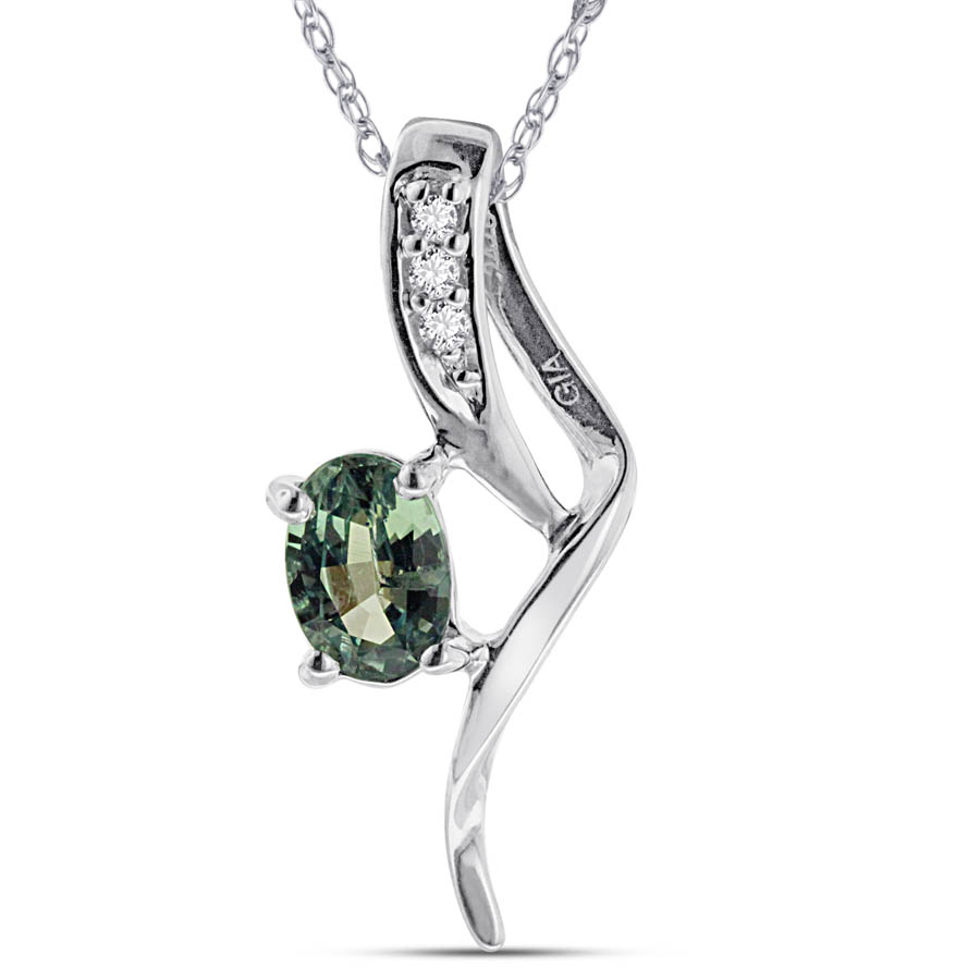 14K YELLOW GOLD TEAL SAPPHIRE WITH WHITE DIAMOND FASHION PENDANT