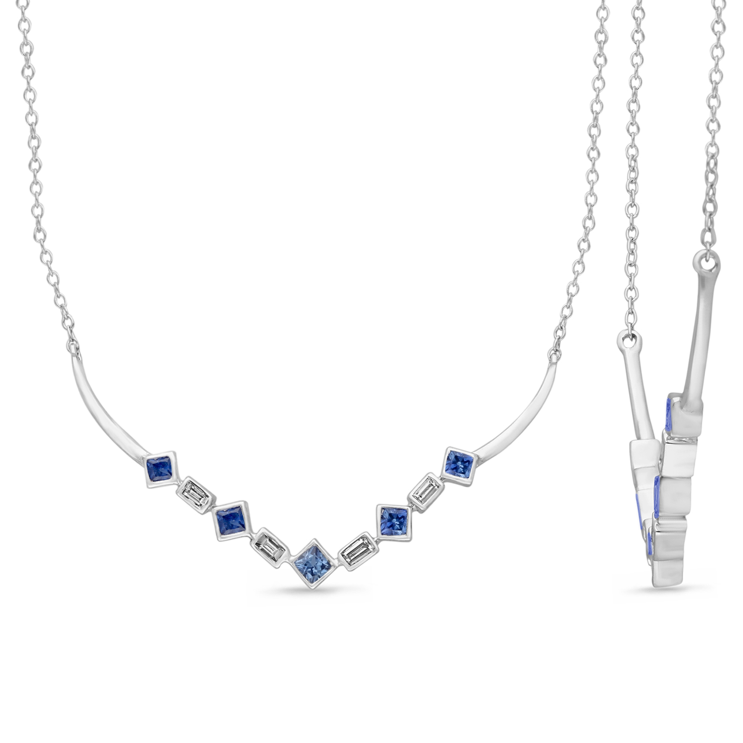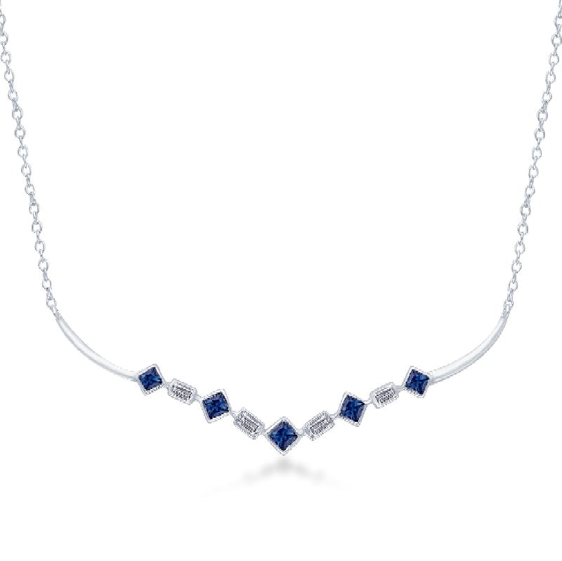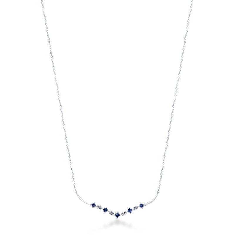 14K WHITE GOLD SAPPHIRE & WHITE DIAMOND