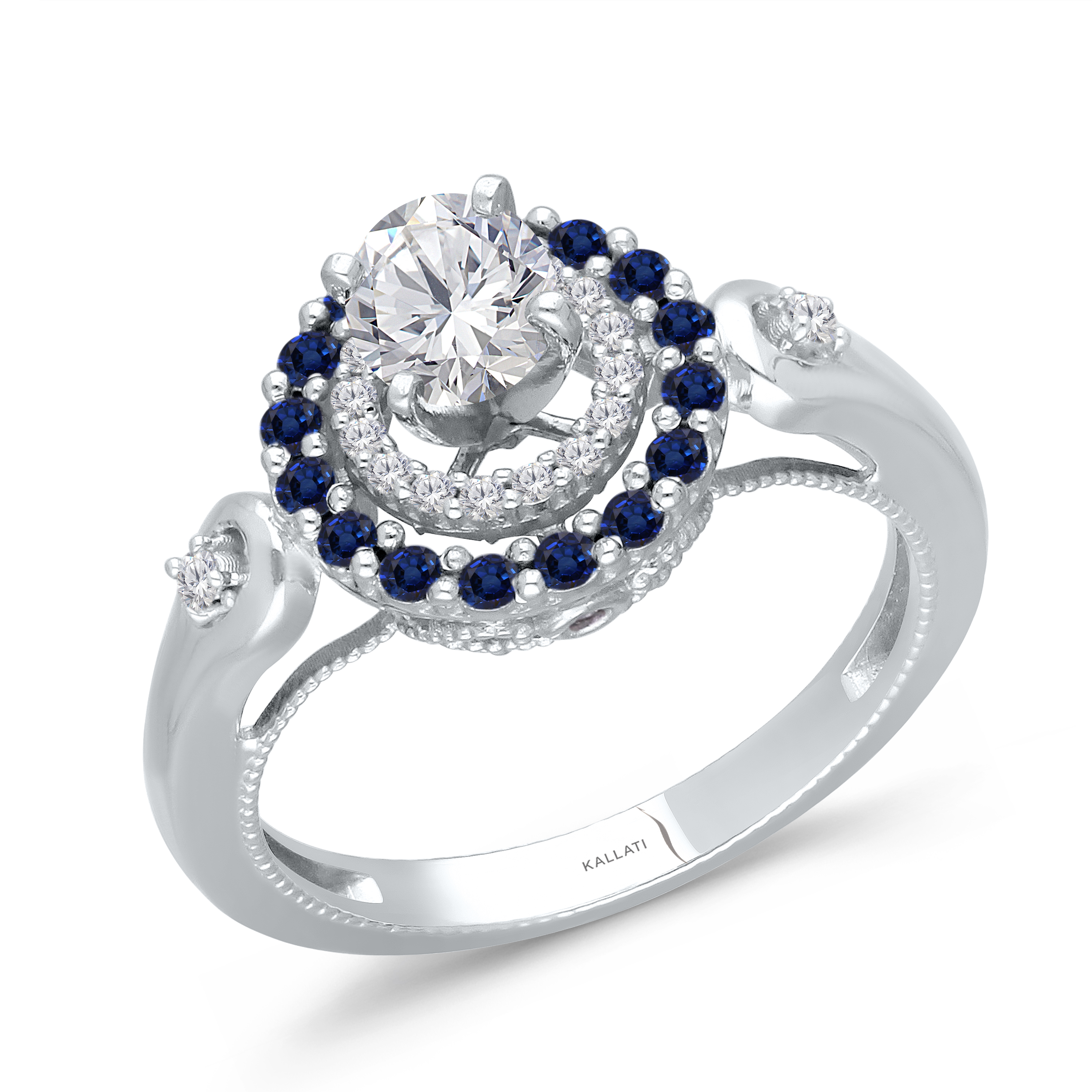 14 K WHITE GOLD WHITE DIAMOND ENGAGEMENT WITH SAPPHIRE RING