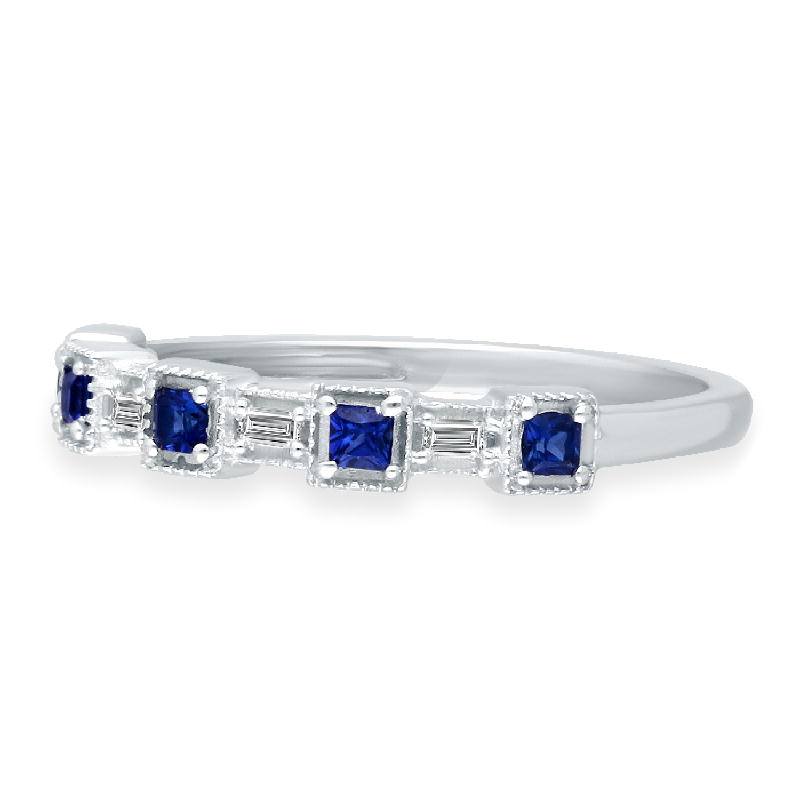 14K WHITE GOLD SAPPHIRE & WHITE DIAMOND FASHION RING