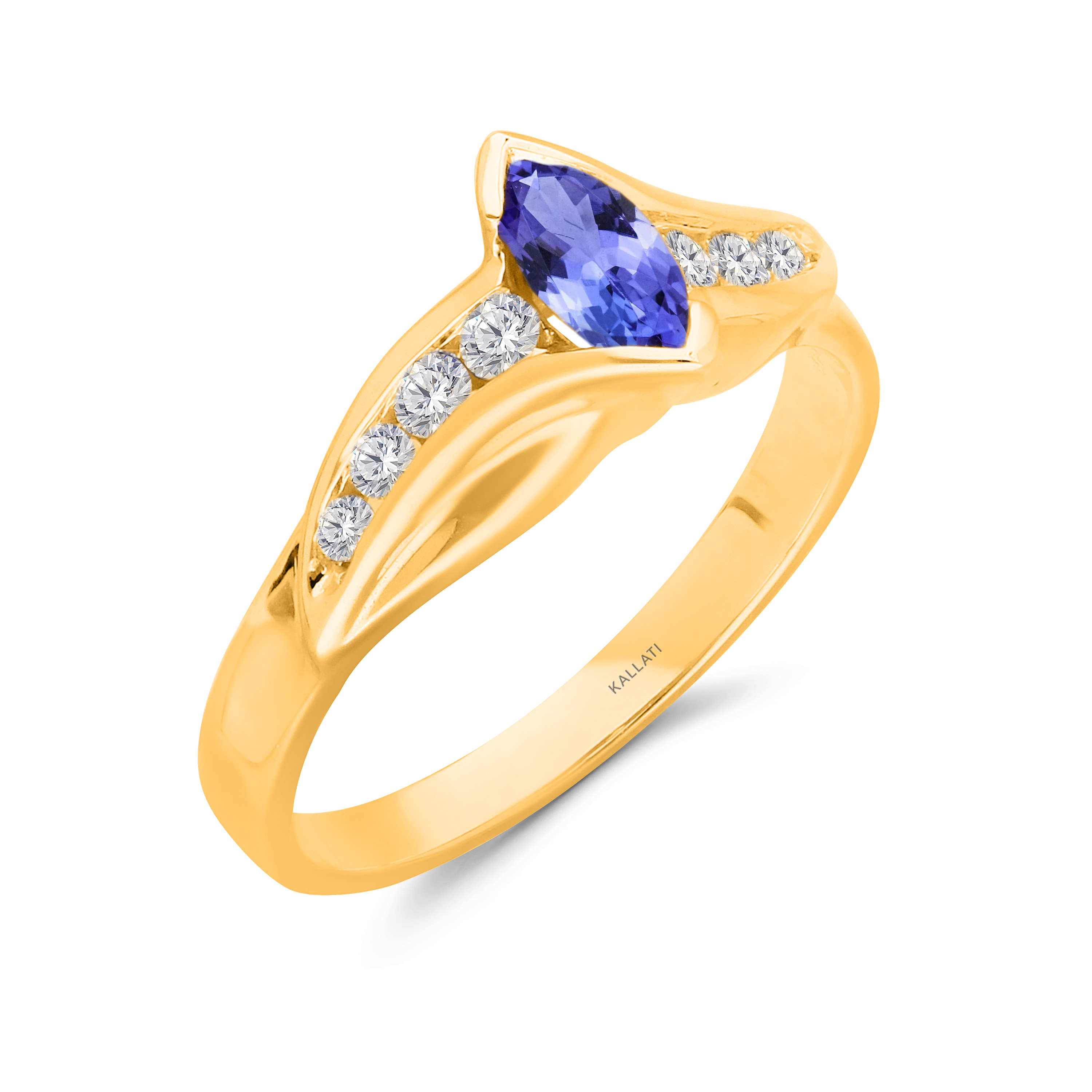 14K YELLOW GOLD TANZANITE WITH WHITE DIAMOND FASHION RING